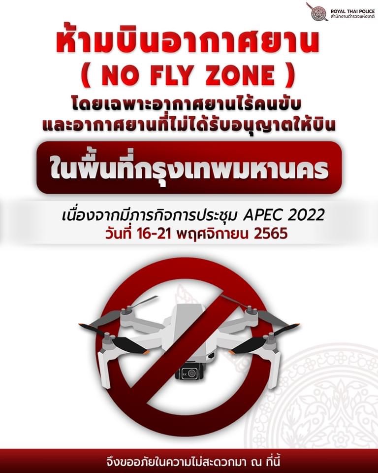ปิดถนนช่วงประชุมเอเปค 16-19 พย + ห้ามโดรนบิน ในกทม