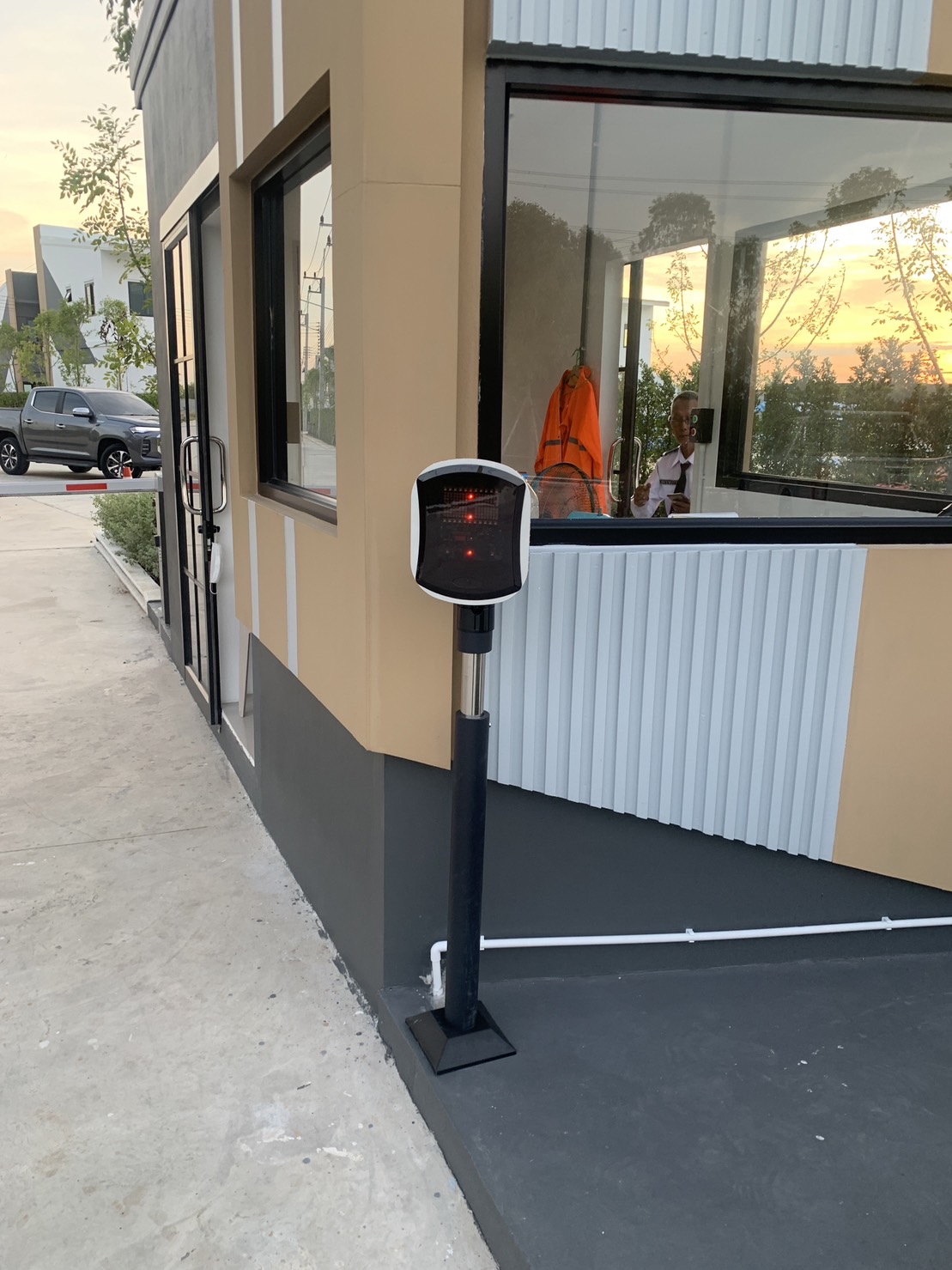 ไม้กั้นรถยนต์ได้ด้วยการใช้บัตรผ่านหรือใช้ระบบอ่านป้ายทะเบียน ให้ลูกบ้านเข้าออกได้สะดวก ไม่ต้องจอดรถไม่ต้องลดกระจกเพื่อทาบบัตร ส่วนลูกบ้านที่ค้างชำระค่าส่วนกลางก็ยังคงให้เข้าออกหมู่บ้านได้ตามปกติแต่ไม่สามารถใช้บัตรผ่านระยะไกลหรือใช้ระบบอ่านป้ายทะเบียนได้ ลูกบ้านกลุ่มนี้จะต้องสแกนนิ้วหรือสแกนหน้าที่ป้อมเพื่อยืนยันตัวตนว่าเป็นลูกบ้านในโครงการจริงๆ หลังจากที่สแกนนิ้วหรือสแกนหน้าสำเร็จระบบจะสั่งยกแขนกั้นขึ้นให้เพื่อให้ลูกบ้านสามารถผ่านเข้าออกระบบไม้กั้นรถยนต์ได้เช่นเดียวกัน