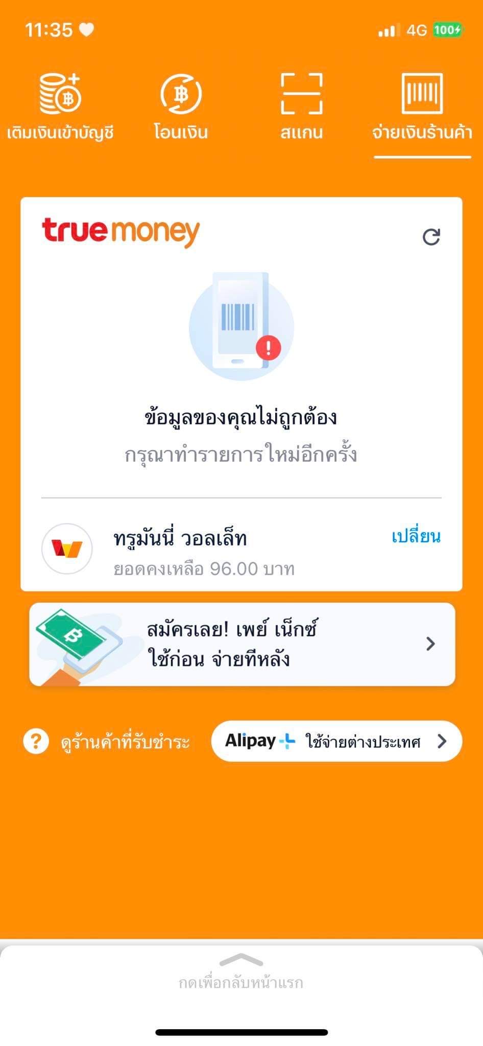 ทรูวอเลต แสกนหน้าไม่ผ่าน