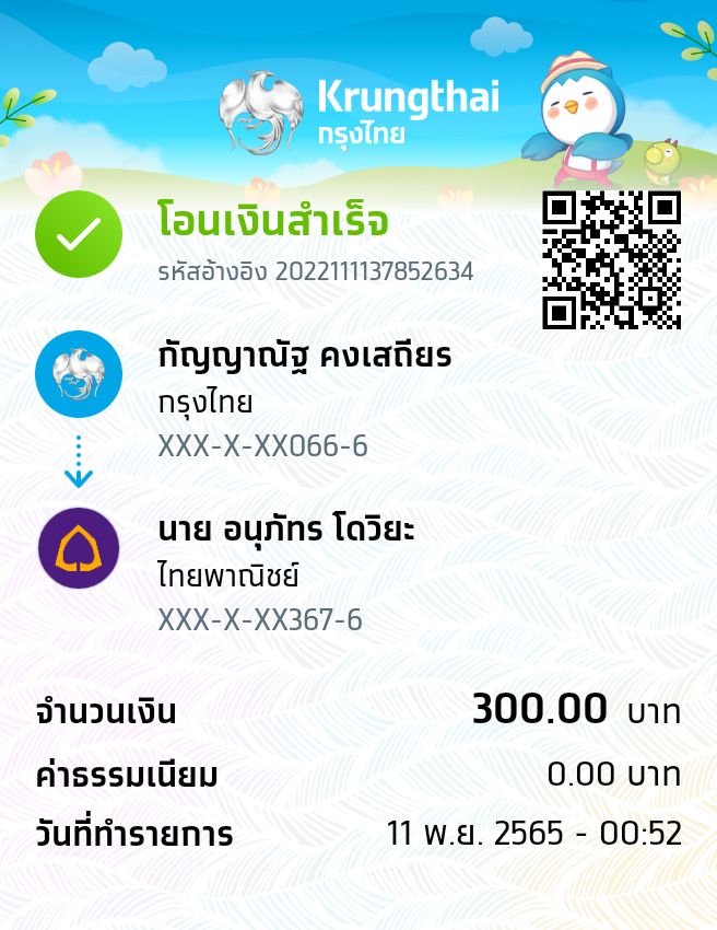 เพื่อนโอนเงินจากscb แต่ไม่เข้ากสิกร