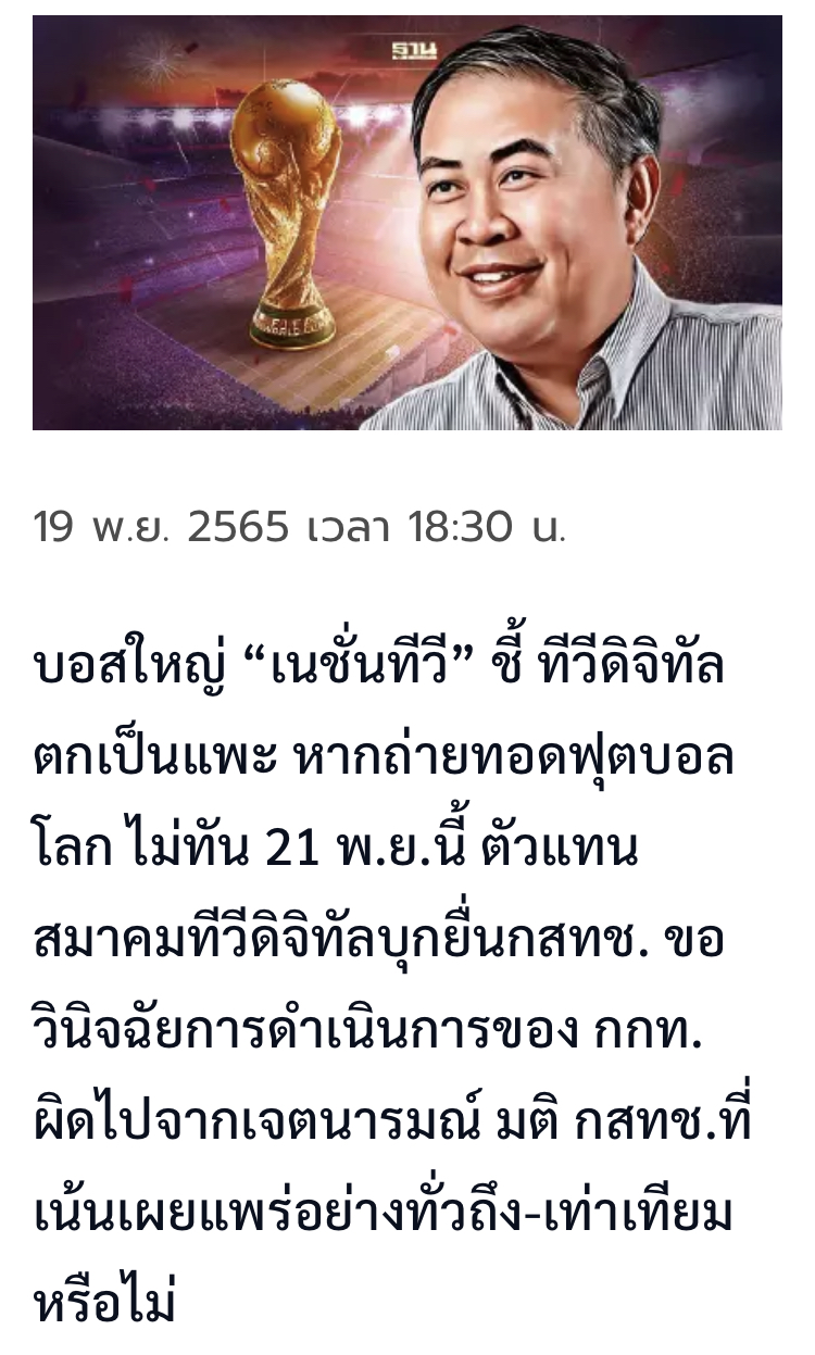 บรรณาธิการไทยรัฐออนไลน์วิเคาระห์ข่าวลิขสิทธิ์บอลโลกผิดหลายจุดจนน่าเกลียด