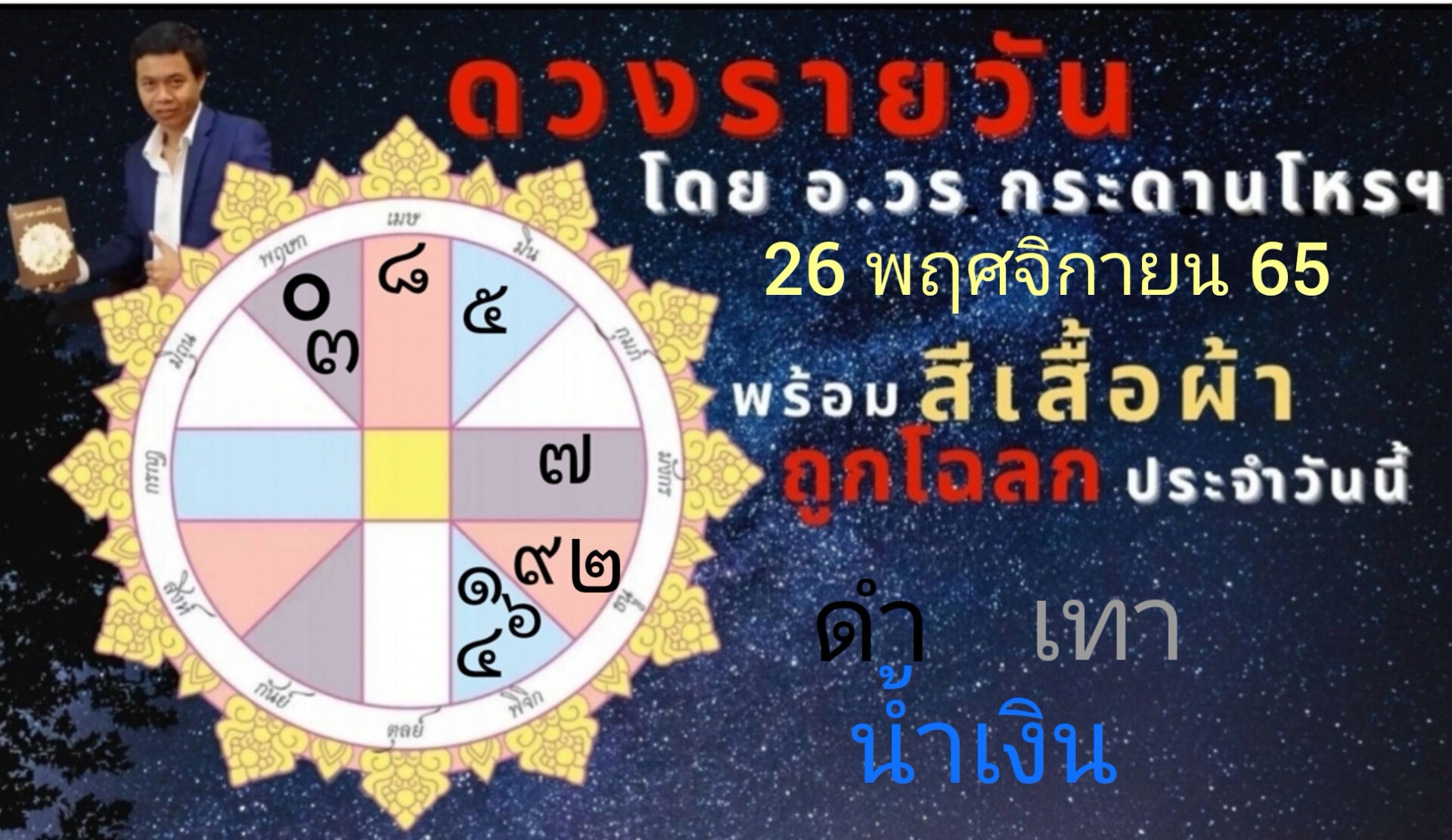 ดวงวันนี้ 26 พฤศจิกายน พ.ศ. 2565 โดย อ.วร กระดานโหรฯ