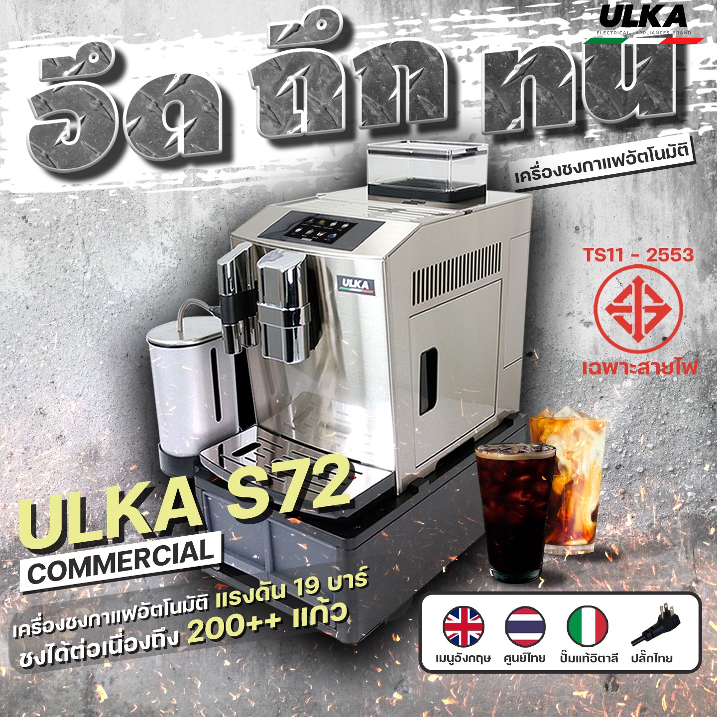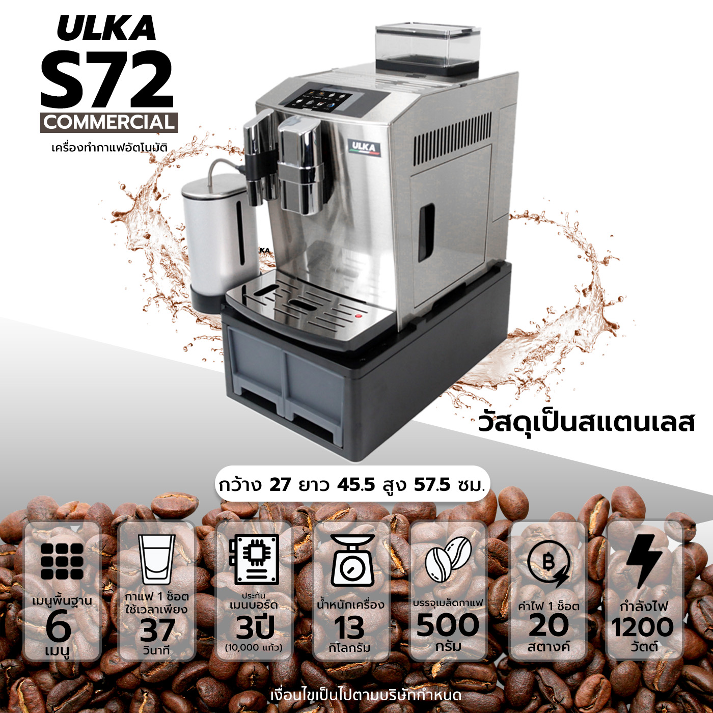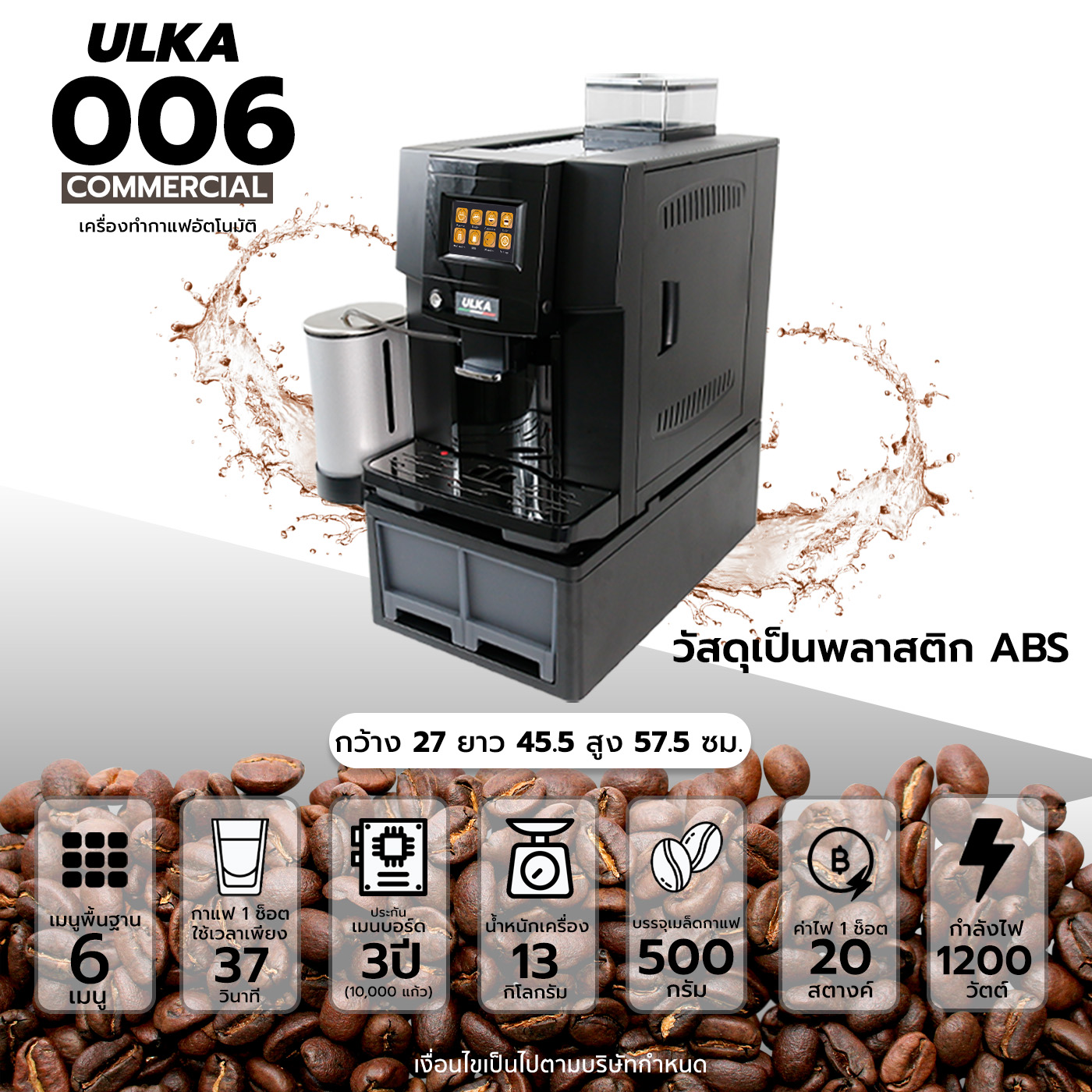 ULKA เครื่องชงกาแฟอัตโนมัติที่คุ้มค่าที่สุดในเวลานี้! เพราะเป็นเครื่องชงกาแฟอัตโนมัติเครื่องแรกในไทยที่สามารถทำได้หลากหลายเมนูทั้งกาแฟ ชาไทย และชาเขียว ซึ่งโดยปกตินั้นเครื่องชงกาแฟทั่วไปจะไม่สามารถทำได้ ที่สำคัญยังใช้งานง่ายมากๆ ไม่ว่าใครก็สามารถทำกาแฟได้ เพียงแค่กดปุ่มเดียวก็สามารถชงกาแฟออกมาได้เหมือนกันทุกช็อตอย่างมืออาชีพ โดย 1 ช็อตใช้เวลาเพียง 37 วินาที (ขึ้นอยู่กับการตั้งค่า) และทำงานต่อเนื่องได้ถึง 200 แก้ว เพราะตัวเครื่องมีหม้อต้ม 2 ลูก ซึ่งแยกการทำงานกันทำให้ไม่ต้องรอ เครื่องจึงผลิตกาแฟออกมาได้เรื่อยๆ ซึ่งต่างกับเครื่องทั่วไปที่ต้องรอหากกดใช้งานหลายๆ แก้วอย่างต่อเนื่อง และมีดับเบิ้ลช็อตไว้ทำกาแฟเย็นได้ด้วย ที่สำคัญเครื่องยังสามารถดูดน้ำจากถังนอกได้อีกด้วย (เช่น ถัง 20 ลิตร)