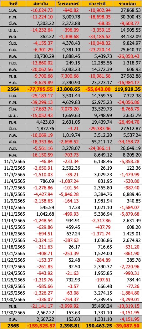 Sinthorn Summary 22/12/2565 : ต่างชาติขายสุทธิ -172.48 ลบ.