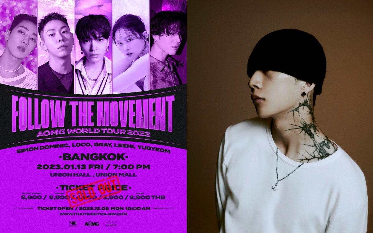 “[ฟอลโลว์ เดอะ มูฟเมนต์] เอโอเอ็มจี เวิลด์ ทัวร์ 2023 อิน แบงคอก” ([FOLLOW THE MOVEMENT] AOMG WORLD TOUR 2023 IN BANGKOK) ศุกร์ 13 ม.ค. จะเป็นเวทีที่รวมเอาศิลปินเค-ฮิปฮอปและอาร์แอนด์บีเบอร์ท็อปของเกาหลีไว้ทั้งหมด 6 คนด้วยกันคือ