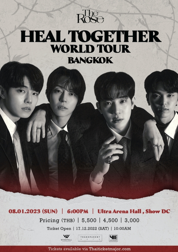 “เดอะ โรส [ฮีล ทูเกเธอร์] เวิลด์ ทัวร์ อิน แบงคอก” (The Rose [HEAL TOGETHER] WORLD TOUR IN BANGKOK) กันในวันเสาร์ที่ 17 ธันวาคม 2565 ที่จะถึงนี้ ตั้งแต่เวลา 10:00 น. เป็นต้นไป ทางไทยทิคเก็ตเมเจอร์ ทุกสาขา หรือระบบออนไลน์