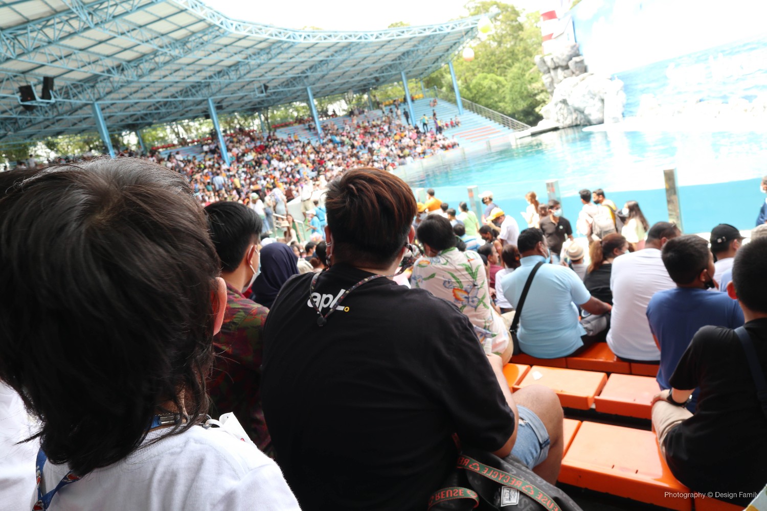 ทานข้าวเสร็จเราก็จะไปชมการแสดงโลมาแสนรู้กันนะครับ คนเยอะมากครับ น่ารักมากด้วยครับปลาโลมา คนแสดงก็เก่งครับ