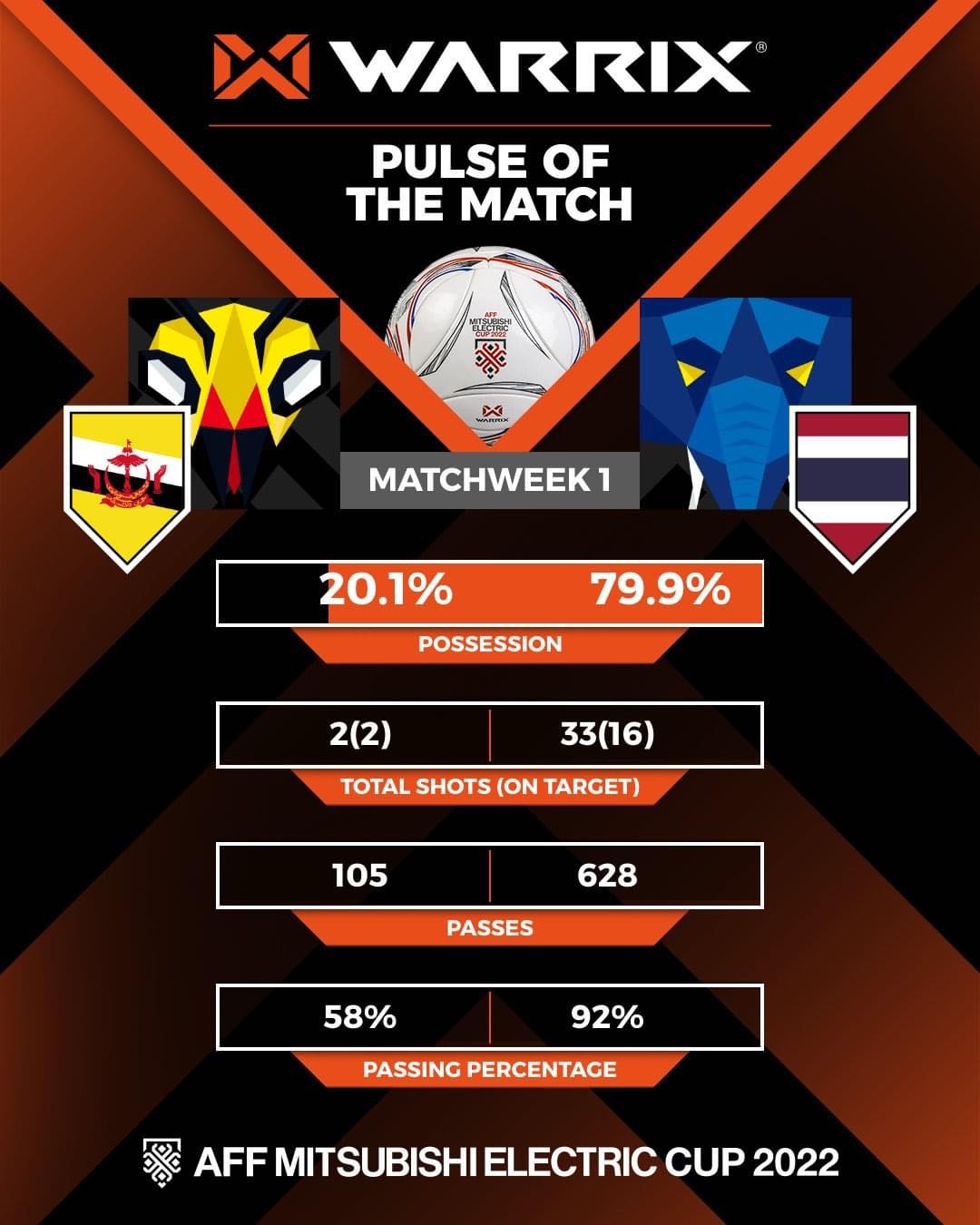 สถิติและไฮไลท์ฟุตบอล AFF ไทย ชนะ บรูไน 5-0
