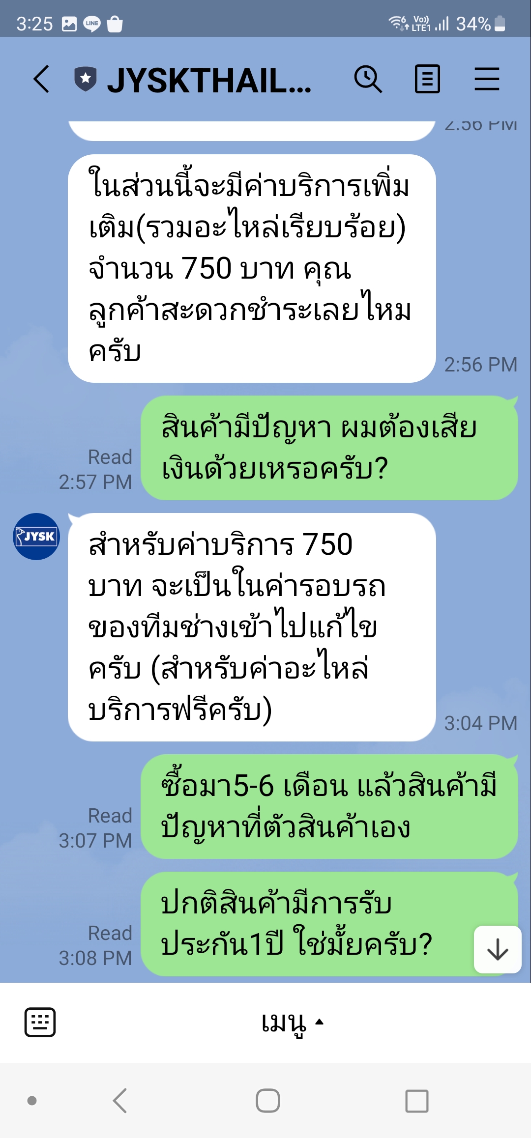 ระวัง JYSK รับประกัน1ปี แต่คิดค่าบริการ750บาท แบบนี้ก้อได้เหรอ???