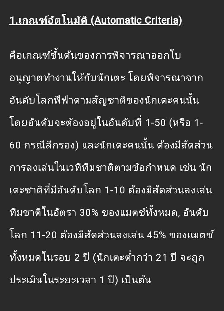 กฎระเบียบการเข้าไปเล่นในพรีเมียร์ลีกของนักเตะไทย