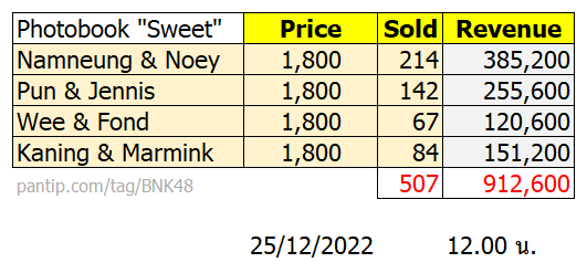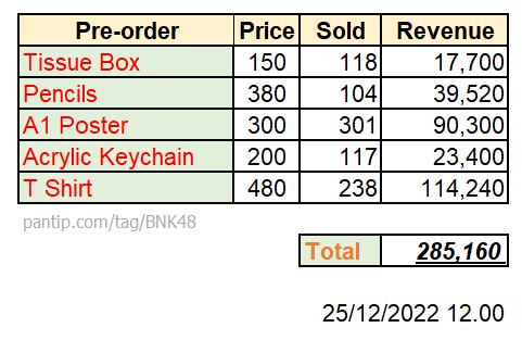 [Update] ยอดขายสินค้าต่างๆ 25/12/65 12.00