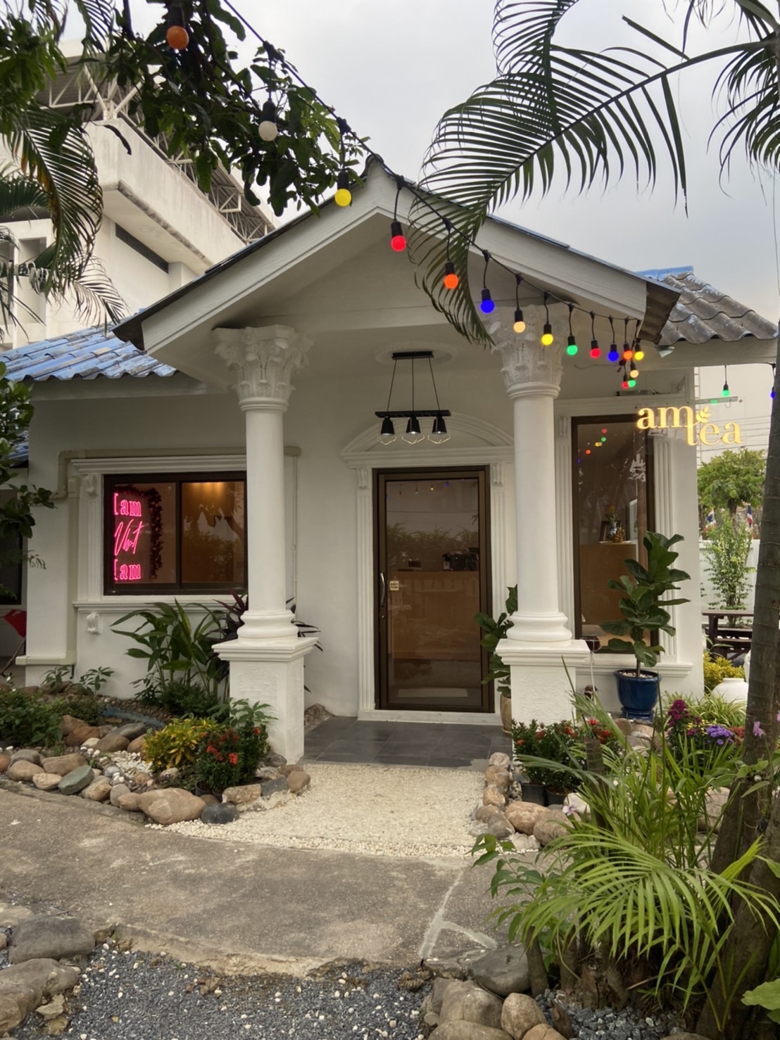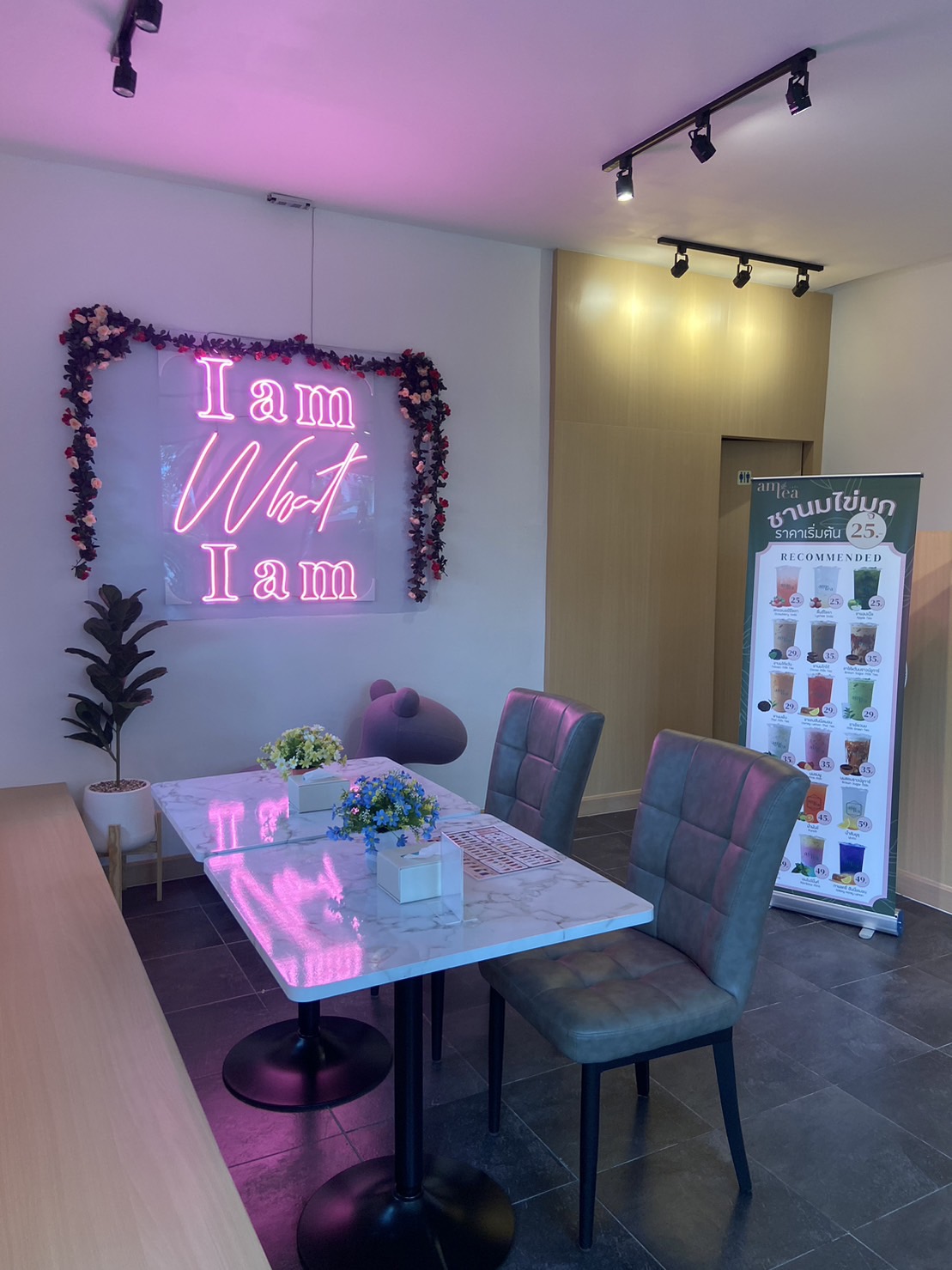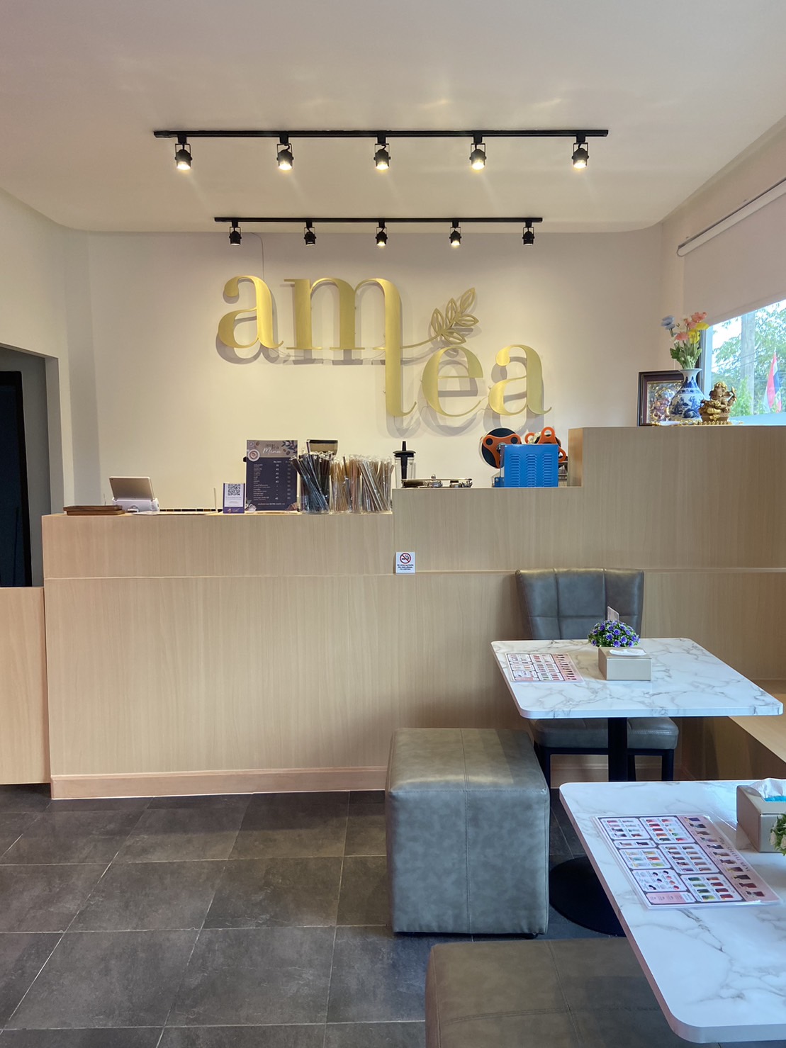 เปิดประตูเข้ามาในร้านจะเห็น Logo AmTea ชัดเจนฮะ