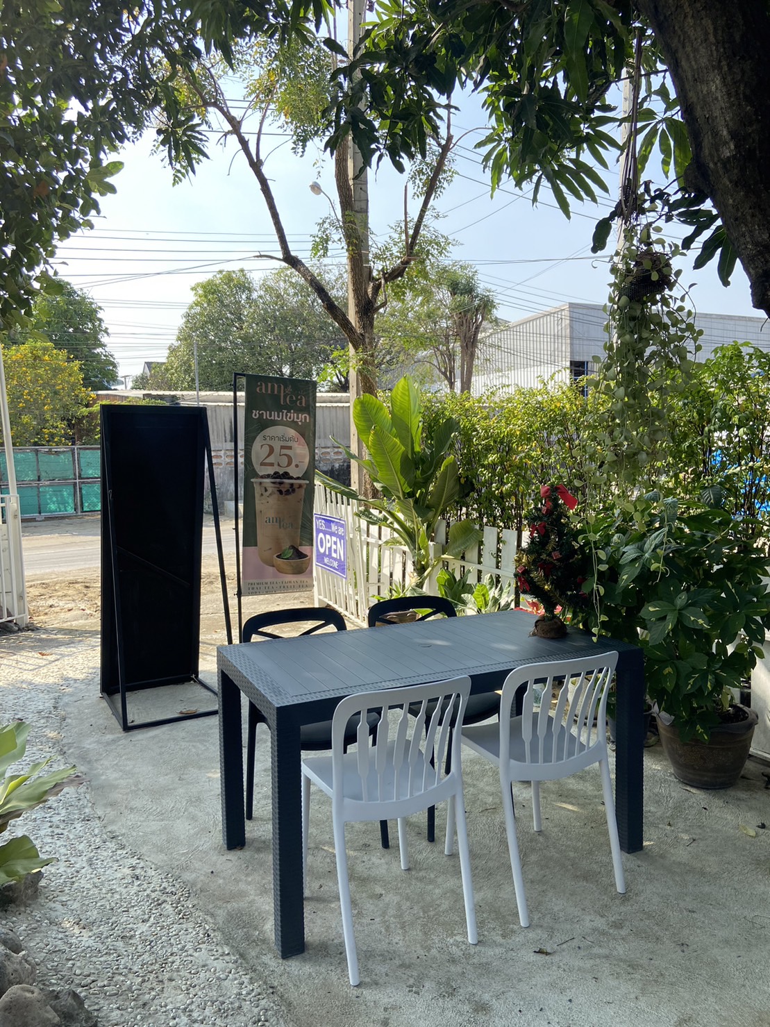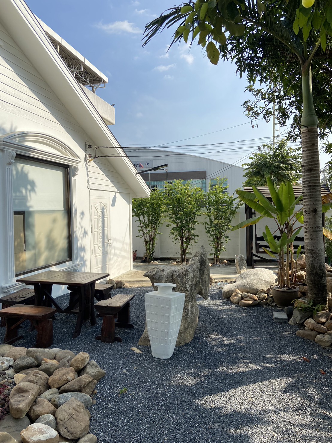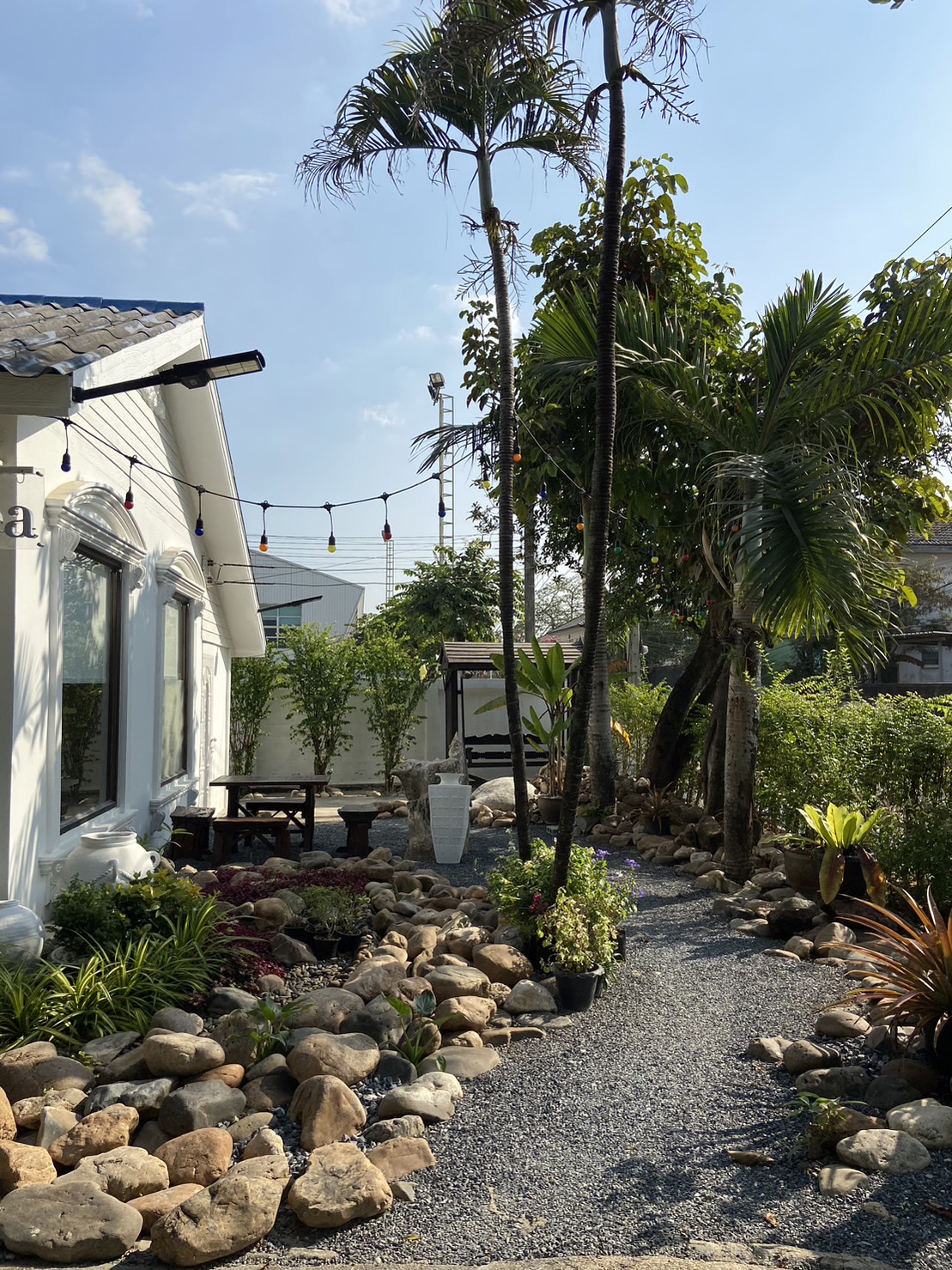 ด้านนอกร้านมีสวนหินเล็กๆ มีโต๊ะให้ลูกค้านั่งเล่น ช่วงบ่ายแดดแรงมาก แนะนำให้นั่งเล่นช่วงเย็น ชิวมากๆค่ะ ที่ร้านค่อนข้างสงบ ไม่วุ่นวาย