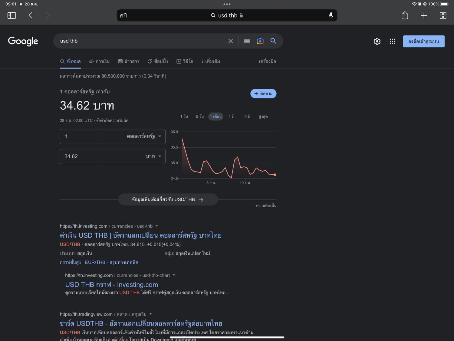 28/12/65 บันทึกค่าเงินบาทล่าสุด 34.62 แนวโน้ม strong stronger