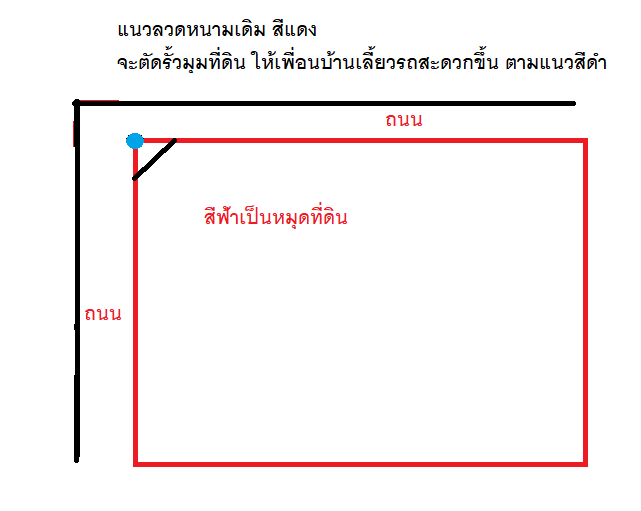เนื่องจาก มีความต้องการปรับแนวรั้วลวดหนาม โดยจะตัดมุมรั้วออก ให้มีพื้นที่ เพื่อให้เพื่อนบ้านเลี้ยวรถได้สะดวกขึ้น