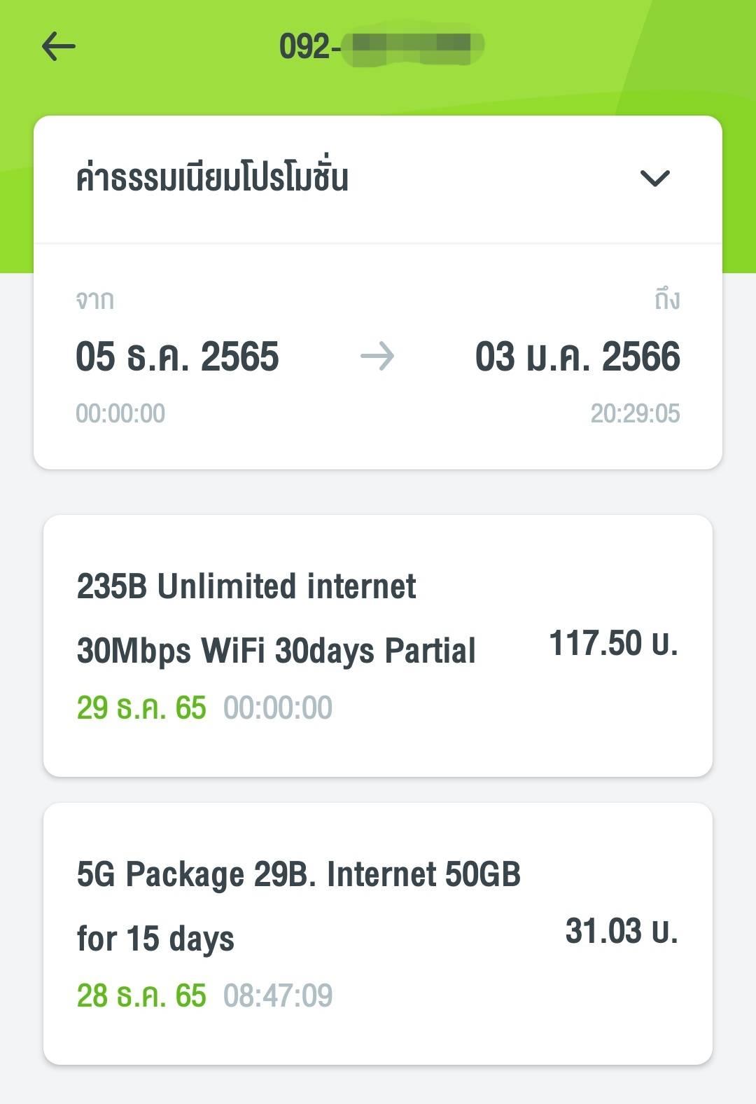 ปกติใช้ package 235 บาท ได้เน็ต 30Mbps แบบไม่จำกัดปริมาณ