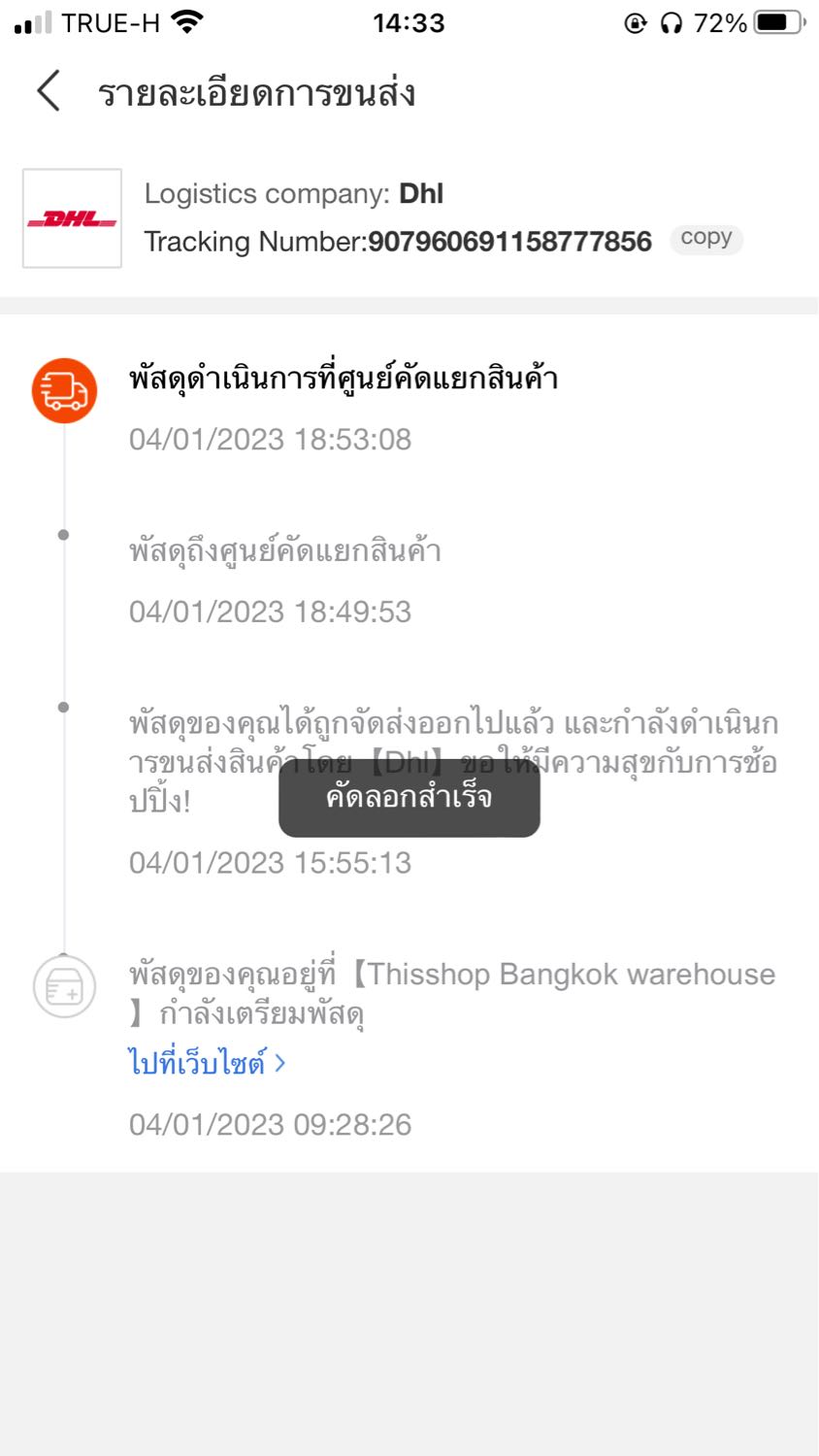 คือผมสั่งของจาก Thisshop ส่งผ่าน DHL พัสดุขึ้นว่า ออกจากศูนย์คัดแยกสินค้าตั้งแต่วันที่ 3 ตอน ตี 5 แล้วตอนนี้ก่ไม่มีอัพเดทอะไรเลยครับ ควรทำอย่างไร DHL