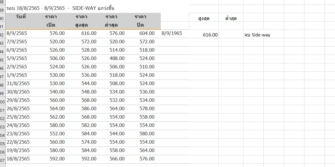 ว่าด้วย delta : ราคาหุ้นและระยะเวลาแต่ละรอบ ตั้งแต่ 1/8/65 - 5/1/66