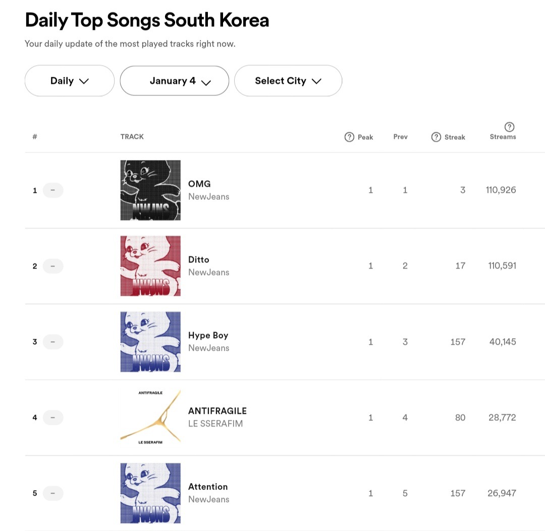 Spotify Global & USA & Korea & Thailand — NewJeans 'Ditto' / 'OMG' / 'Hype Boy' ทำยอดสตรีม new peak!