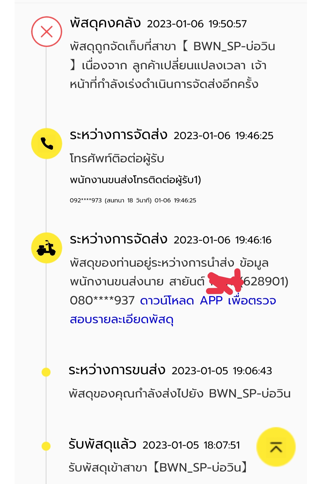 พนักงานไม่โทรมาพัสดุมาถึงสาขาที่บ้านแล้วแต่ตอนนี้ตีกลับไปบางพลีส่งทั้งหมด6กล่องตีกลับไปบางพลี3กล่อง ต้องทำยังไงคะ