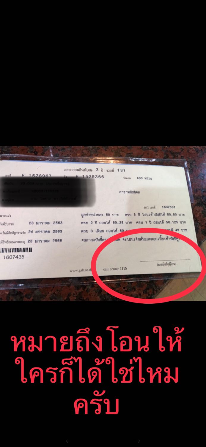 สลากออมสิน ด้านขวาล่างมี ลายมือชื่อผู้โอน หม่ยถึงอะไร ขอบคุณครับ