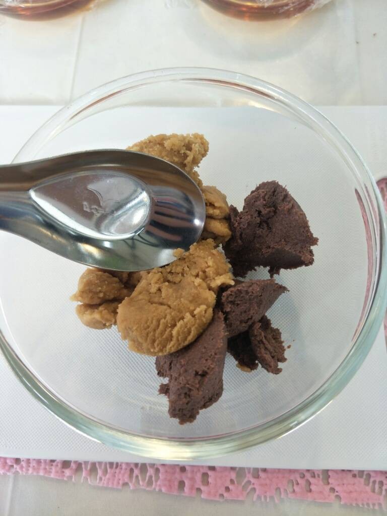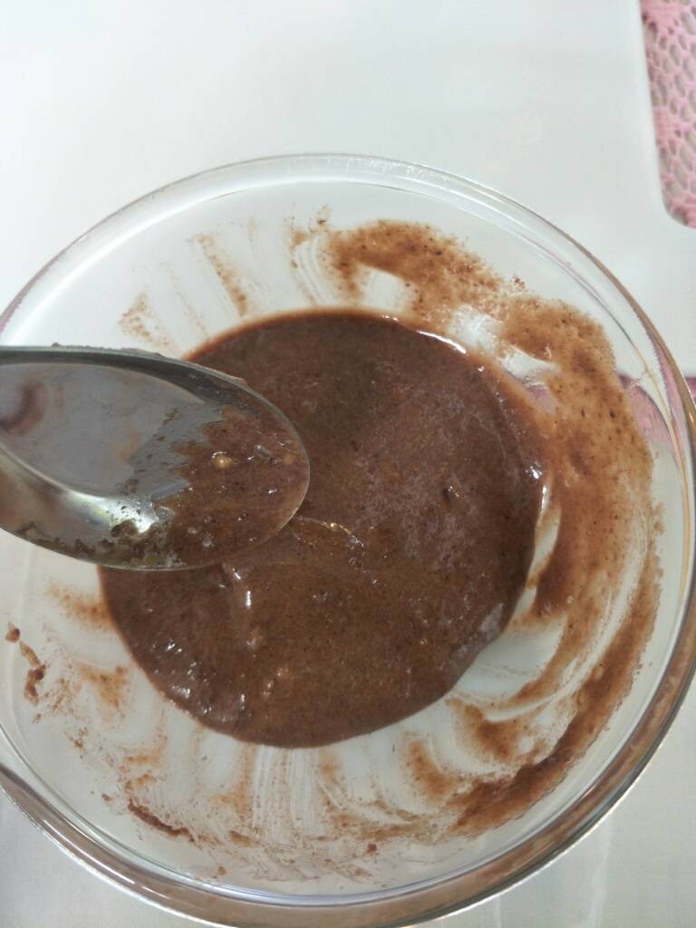 2. ใส่น้ำลงไปเล็กน้อย ใช้ช้อนบดจนเป็นเนื้อเดียวกัน