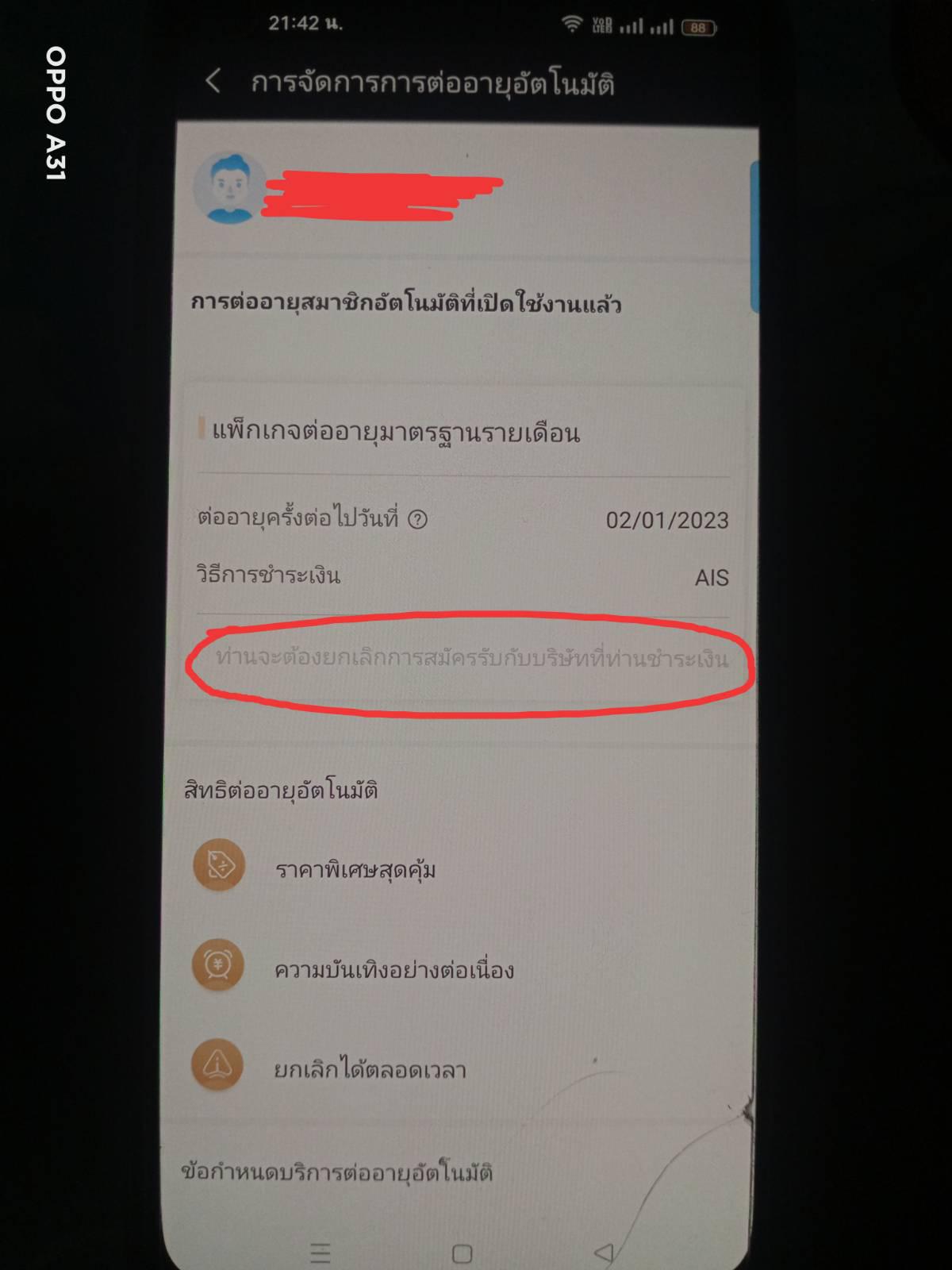 สอบถามเกี่ยวยกเลิกแพ็คเกจรายเดือนiqiyiของAIS