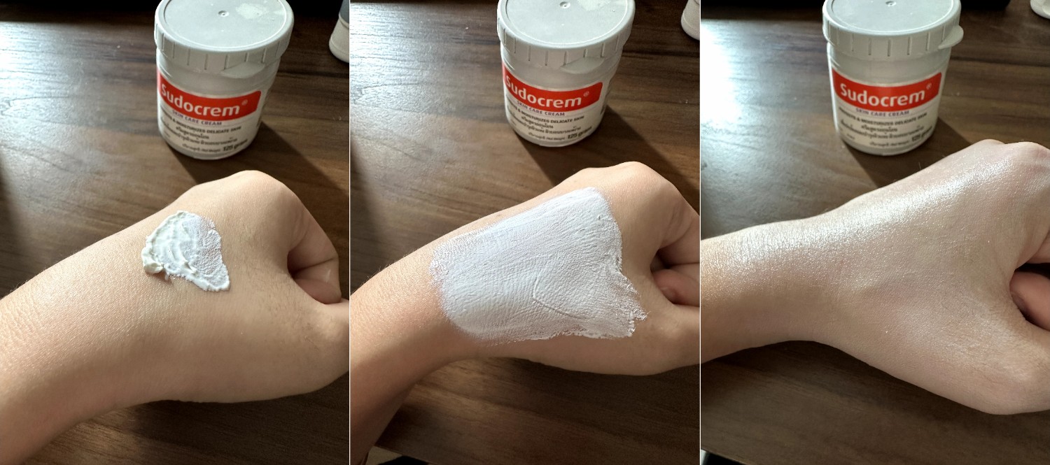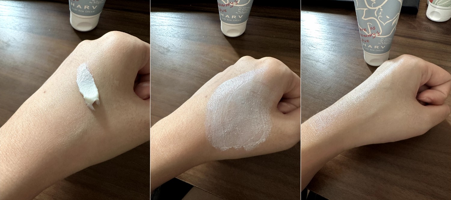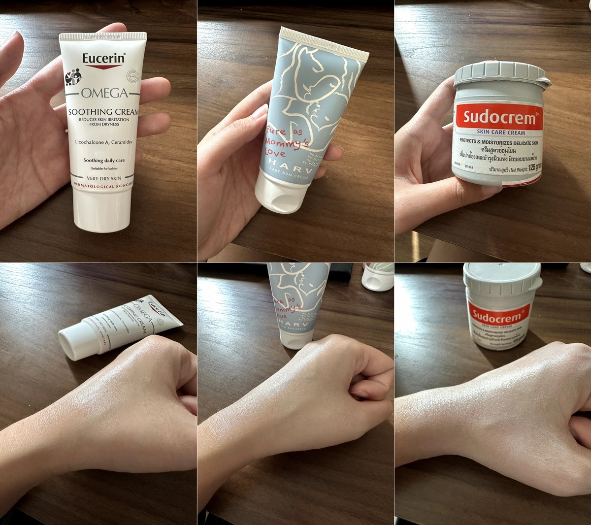 เนื้อครีมมีความข้น แต่ทาแล้ว ซึมซาบได้ดี ที่รู้สึกว่าโอเค คือ พอเนื้อครีมซึมเข้าผิวแล้ว เหมือนมันจะช่วยเคลือบผิวลูก ที่จุดที่เราทาเนื้อครีมลงไป ที่สำคัญช่วยลดการเสียดสีของผิวลูกกับผ้าอ้อมได้ดีมากๆ แถมยังรู้สึกได้ถึงผิวที่กักเก็บความชุ่มชื้นได้มากขึ้น ช่วยให้ผิวน้องไม่แห้งหรือเกิดการระคายเคืองทำให้เกิดผื่นผ้าอ้อม เหมือนที่ชอบเป็นบ่อยๆ ก่อนหน้านี้