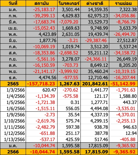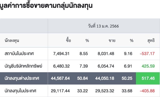Sinthorn Summary 13/1/2566 : ต่างชาติซื้อสุทธิ 517.46 ลบ.