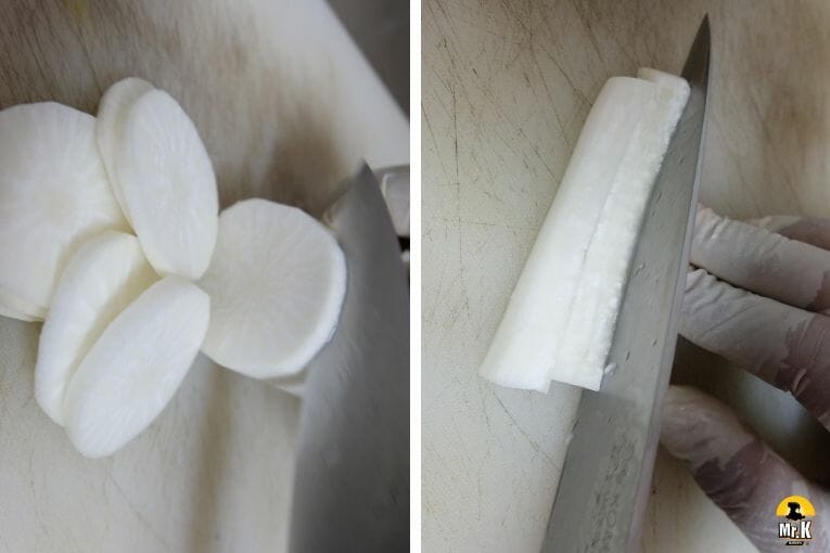 10.) ระหว่างรอน้ำดองเย็นตัว ก็นำหัวไชเท้า 2 หัวมาปอกเปลือก และล้างน้ำให้สะอาด