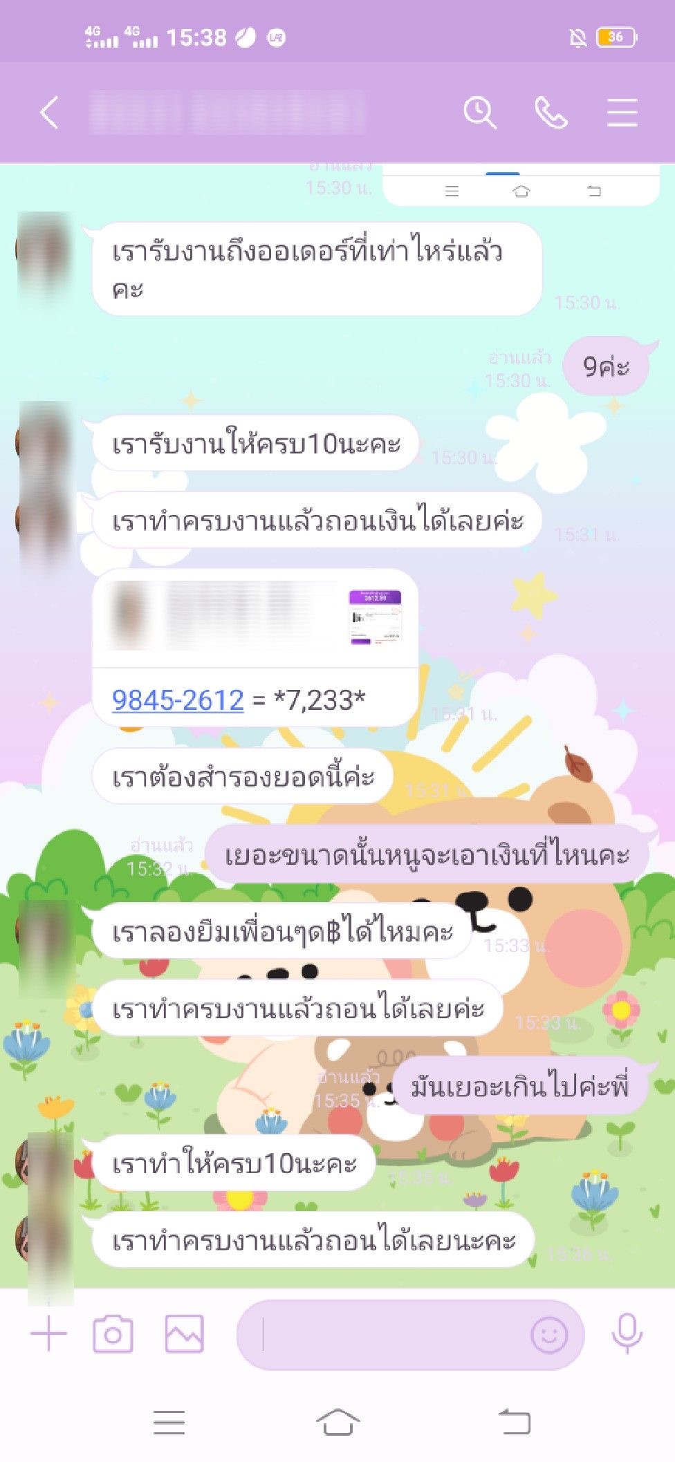 ลองทำได้2รอบ พอรอบ3เขาบอกให้สำรองทุน 7000 กว่าบาท **แล้วก็ปล่อยเลยค่ะ ไม่ได้สำรองทุน พอเราไม่ทำเเล้ว เขาก็ส่งแบบนี้มาให้ เขาไม่รู้จะทำไงดี กลัวมากค่ะ กลัวว่าเราจะรับผิดชอบตังค์ 7000 เขาจะส่งของมาที่บ้านให้เราจ่าย เราไม่มีตังค์