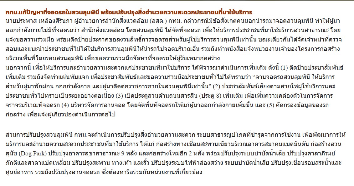 ชัชชาติ - กทม.แก้ปัญหาที่จอดรถในสวนลุมพินี พร้อมปรับปรุงสิ่งอำนวยความสะดวกประชาชนที่มาใช้บริการ