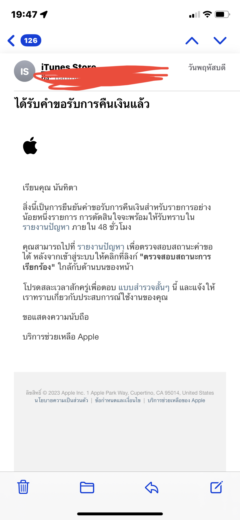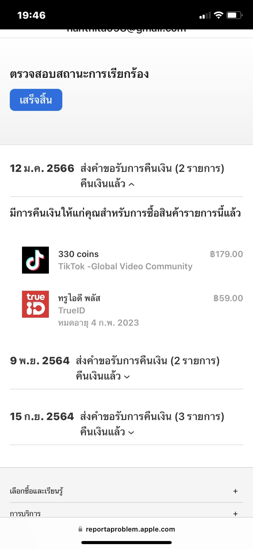 ขอรับเงินคืนเเต่ไม่ได้คืนเเถมยอดติดลบ reportaproblem.apple