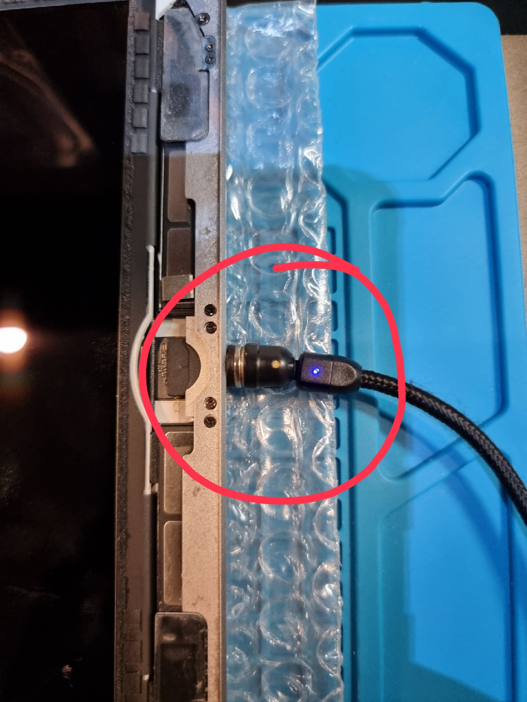 แต่เปิดไม่ติด เสียบช๊าตไว้ลองดู ก็ไม่เห็นมีไฟเข้าที่เป็นรูปสายฟ้าสีแดง