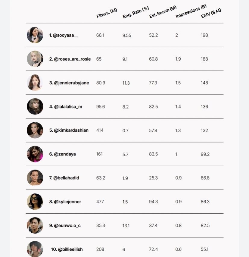 BLACKPINK members JISOO, ROSÉ, JENNIE, and LISA ranked 1-4 respectively as the top INFLUENCERS OF THE YEAR in the FASHION INDUSTRY. นำโดย JISOO ด้วยยอด EMV of 198 Million USD! และน้องๆในวงทั้งหมด✨