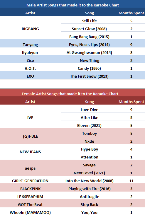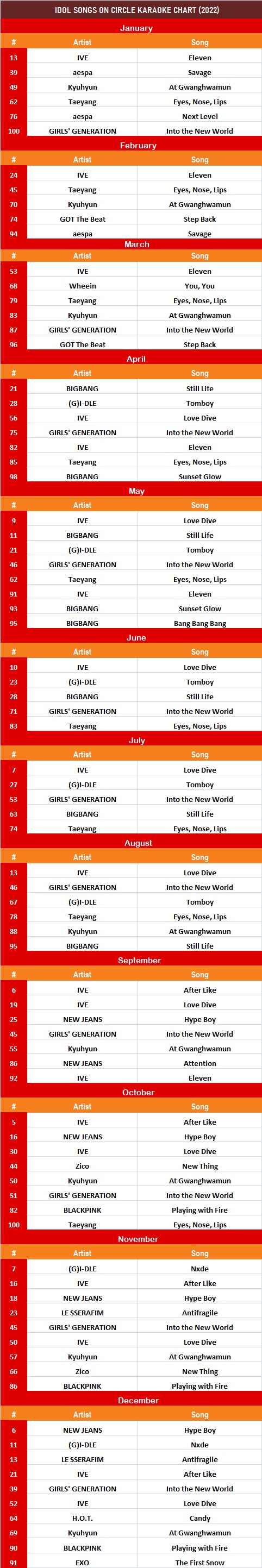 เพลงของ K-pop idols ที่ถูกร้องมากที่สุดของเกาหลีใต้ใน 2022 Karaoke chart
