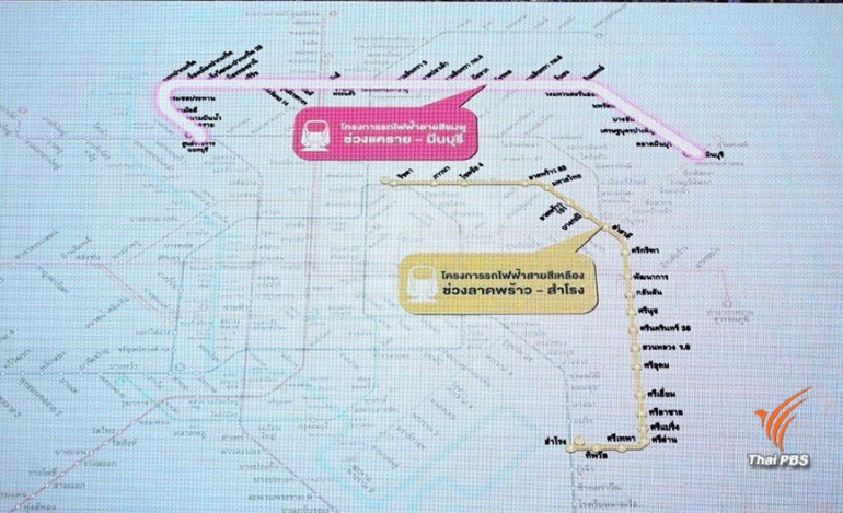 สำหรับโครงการรถไฟฟ้าสายสีชมพู ช่วงแคราย-มีนบุรี ระยะทางประมาณ 34 กม. จำนวน 30 สถานี โครงการรถไฟฟ้าสายสีเหลือง ช่วงลาดพร้าว-สำโรง ระยะทาง 30 กม. จำนวน 23 สถานี ทั้ง 2 สายสามารถรองรับผู้โดยสาร 28,000 คนต่อชั่วโมง คาดว่าจะเปิดให้บริการปี 2564 ซึ่งทั้ง 2 โครงการเป็นหนึ่งในแผนแม่บทระบบขนส่งมวลชนทางรางในกรุงเทพฯ และปริมณฑล หรือ M-MAP ระยะที่ 1