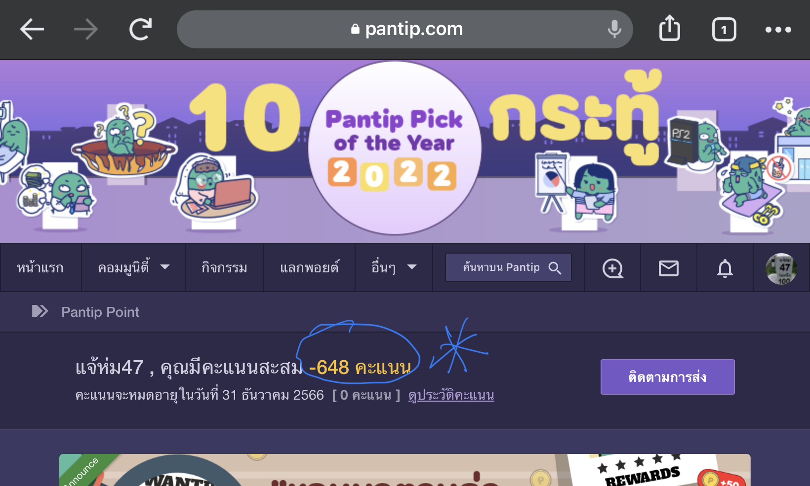 โดนแล้ว เมื่อวานมี110 คะแนน วันนี้โดนดูดคะแนน และคะแนนติดลบเลี้ยว ๆๆ