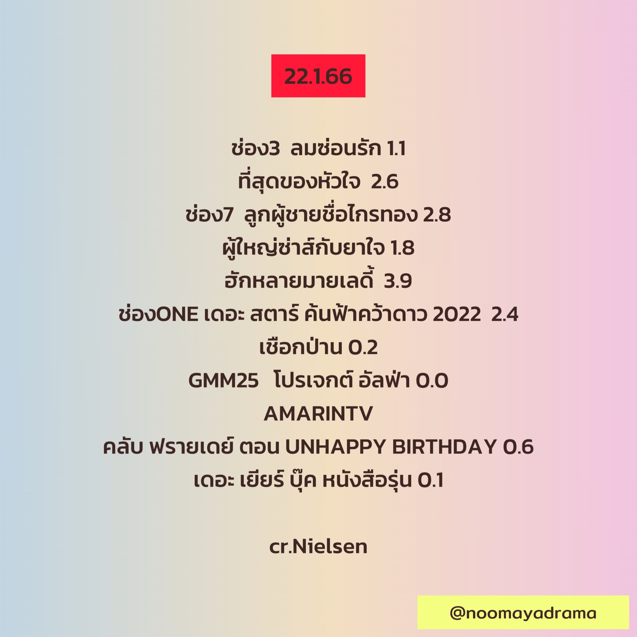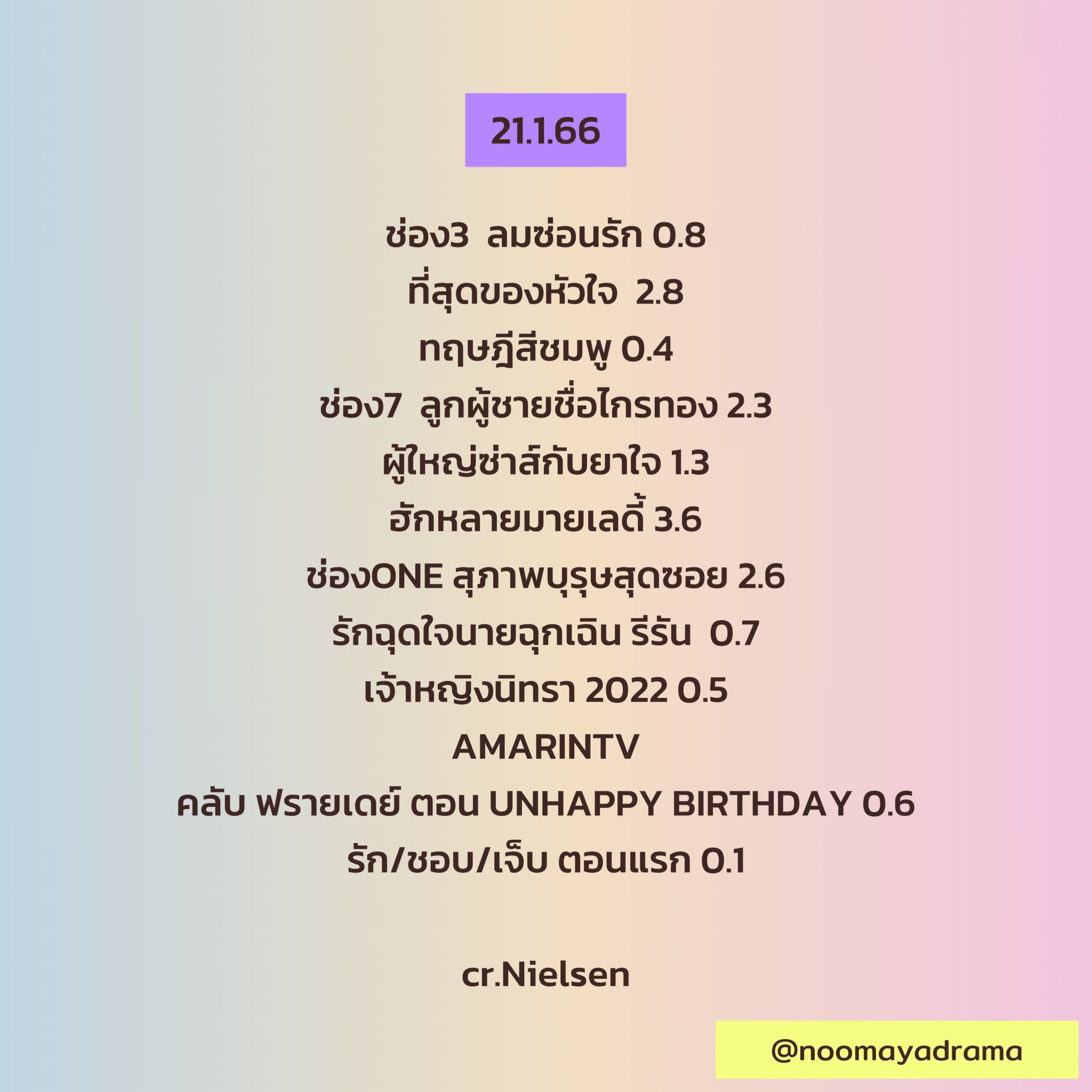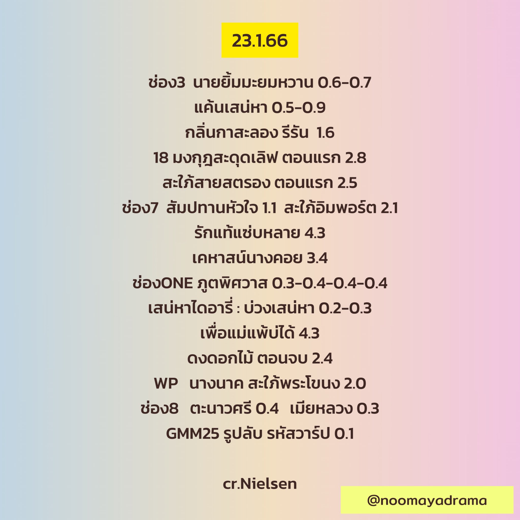 เรตติ้ง ละครหลังข่าว + มวยหลังข่าว วันที่ 20 -21 -22 - 23 มกราคม 2566 มาแล้วจร้าา