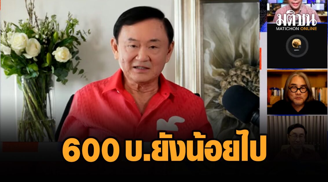 “นโยบายค่าแรงขั้นต่ำ ของพรรคเพื่อไทย เป็นเพราะต้องการยกระดับเศรษฐกิจ อย่าตกใจ ที่บอกว่าจ่าย 600 บาทนั้น เพราะที่จริงแล้วเมื่อถึงปี 2570 ผมดูแล้ว 600 บาทอาจเอาไม่อยู่ด้วย เพราะเชื่อว่าเศรษฐกิจจะดีขึ้นกว่านั้น ถ้าปล่อยให้เพื่อไทยเขาแลนด์สไลด์ เขาทำได้แน่” นายทักษิณกล่าว