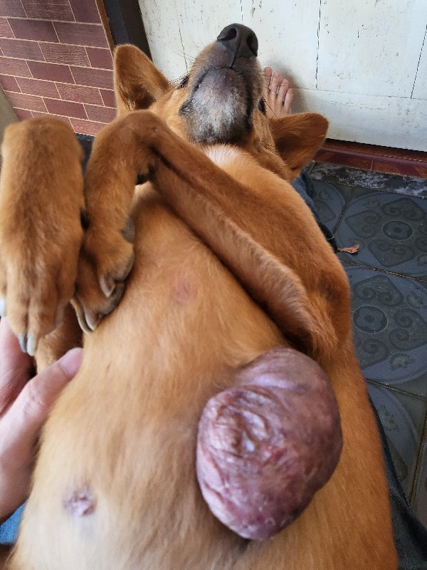 สุนัขโกลเด้นอายุ 10 ปี นิสัยตอนนี้ร่าเริงปกติ แต่เริ่มวิ่งไม่ค่อยได้แล้ว เพราะน้องมีก้อนเนื้อ (ไม่แน่ใจว่าใช่เนื้องอกไหม) ตรงบริเวณขาพับ ก้อนค่อนข้างใหญ่และแข็งมาก ๆ แล้วก็มีตรงท้อง ใหญ่ประมาณกำปั้นแล