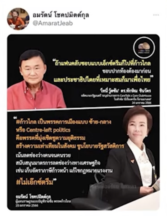 อมรัตน์ สวนปากทักษิณ ก้าวไกล ไม่เอ็กซ์ตรีม พร้อมลง คลิป ทักษิณ ปั่นเสื้อแดงชุมนุมรุนแรง