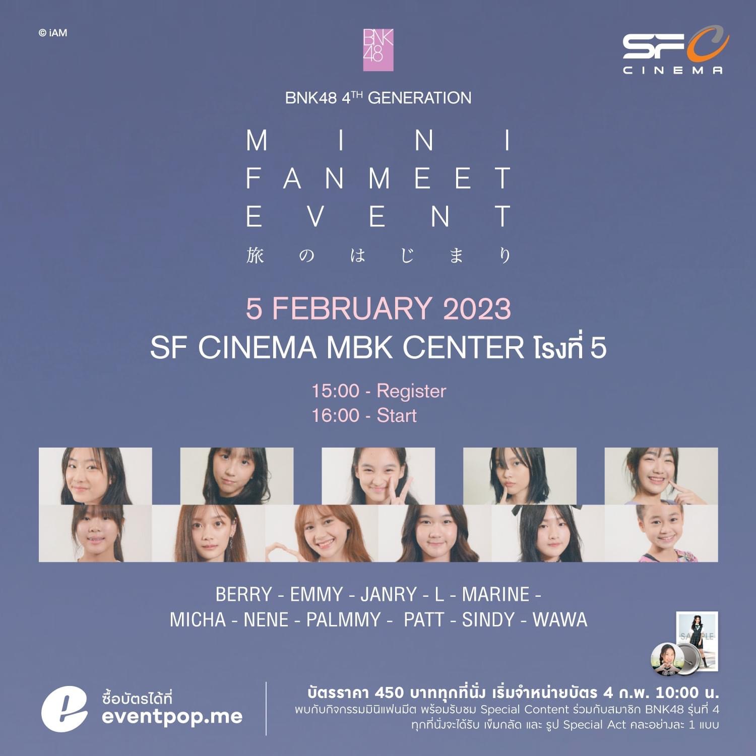 พบกับกิจกรรม Mini Fanmeet พร้อมรับชม Special Content “BNK48 4th Generation: Prologue to the Journey” ร่วมกับสมาชิก BNK48 รุ่นที่ 4