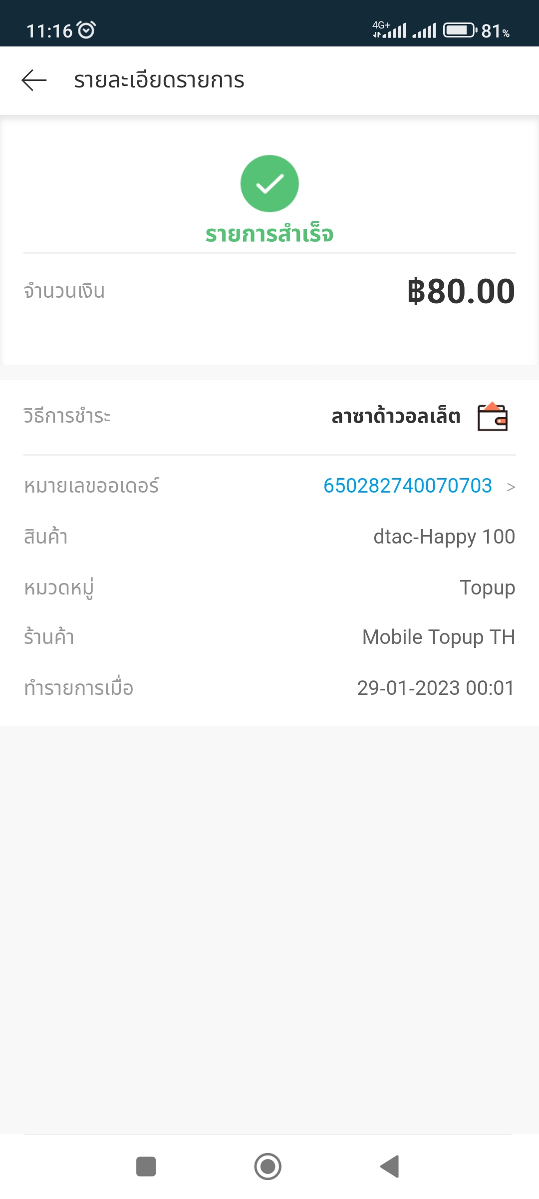 เงินถูกหักไปแล้วจาก Lazada Wallet แต่เงินไม่เข้าเบอร์ ดีแทค