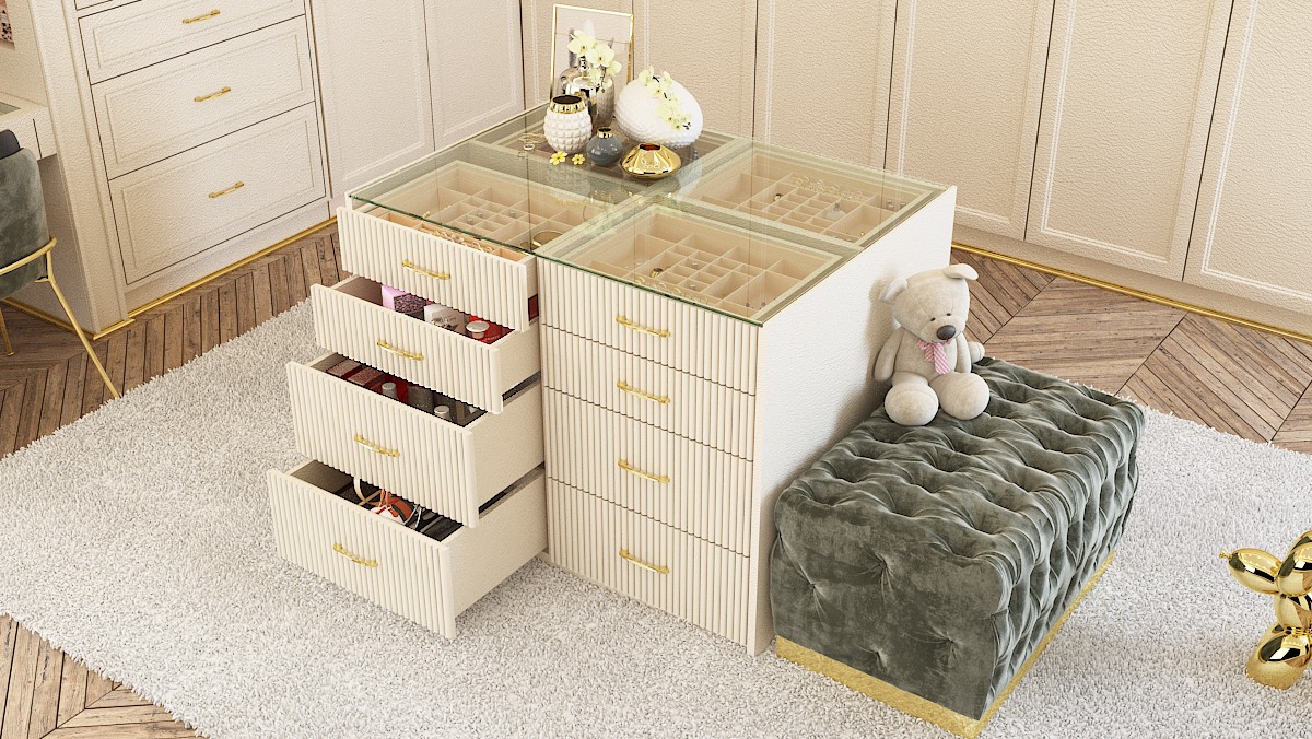 ลิ้นชักบนสุดผมแนะนำให้เก็บเครื่องประดับครับ TOPด้านบนควรเป็นกระจกใสจะได้มองลงมาเห็นเครื่องประดับด้านล่าง ลิ้นชักไม่ควรจะลึกนัก ลึกประมาณไม่เกิน 8 cm ลิ้นชักถัดลงมา2ลิ้นชักเก็บ ถุงเท้าถุงน่อง ของจุกจิกทั้งหลาย อีกชั้นหนึ่งเก็บกางเกงใน ชุดชั้นใน เนคไท เข็มขัด ความลึกประมาณ 12cm ถัดลงมาล่างสุดเก็บ กางเกงขาสั้น ชุดกีฬากระโปรงสั้น ความลึกประมาณ 17cm