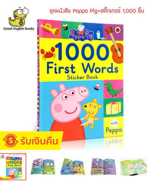 3. (ใช้โค้ดรับcoinคืน10%ได้) พร้อมส่ง ชุดคำศัพท์+สติ๊กเกอร์ Peppa Pig: 1000 First Words Sticker Book มี 64 หน้า Sticker 1,000 ชิ้น 350