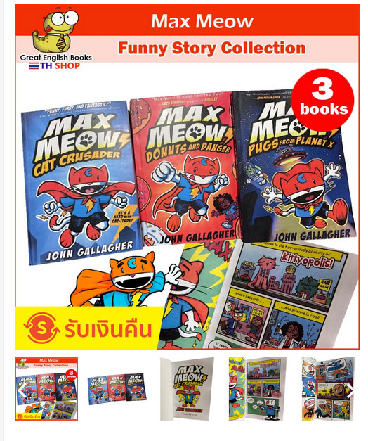 9. (ใช้โค้ดรับcoinคืน10%ได้) พร้อมส่ง หนังสือการ์ตูนภาษาอังกฤษ Max Meow Graphic Novel Series for Kids ชุด 3 เล่ม ปกอ่อน ได้รางวัล New York 790