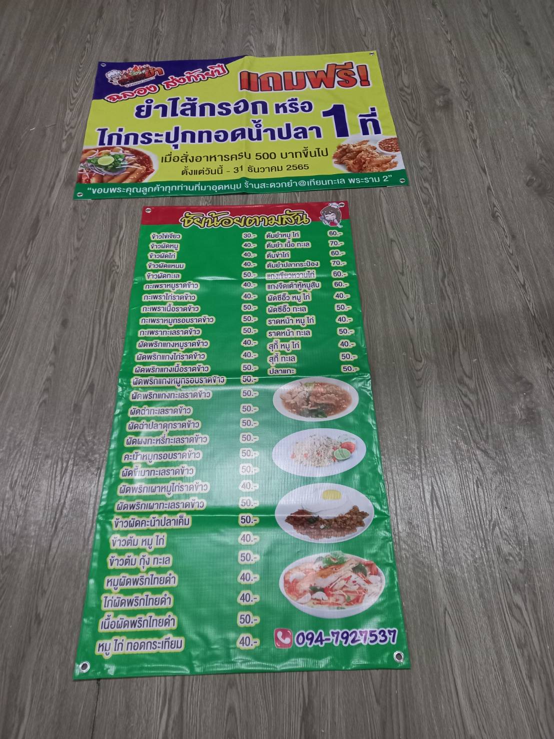 รับพิมพ์ป้ายไวนิล เหมาะสำหรับพ่อค้าแม่ค้าที่ใช้เป็นป้ายหน้าร้านครับ