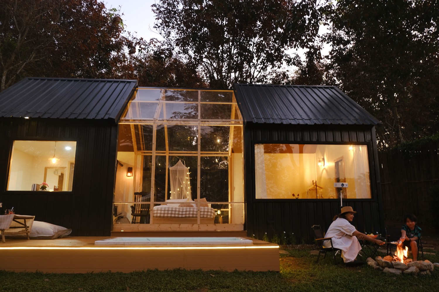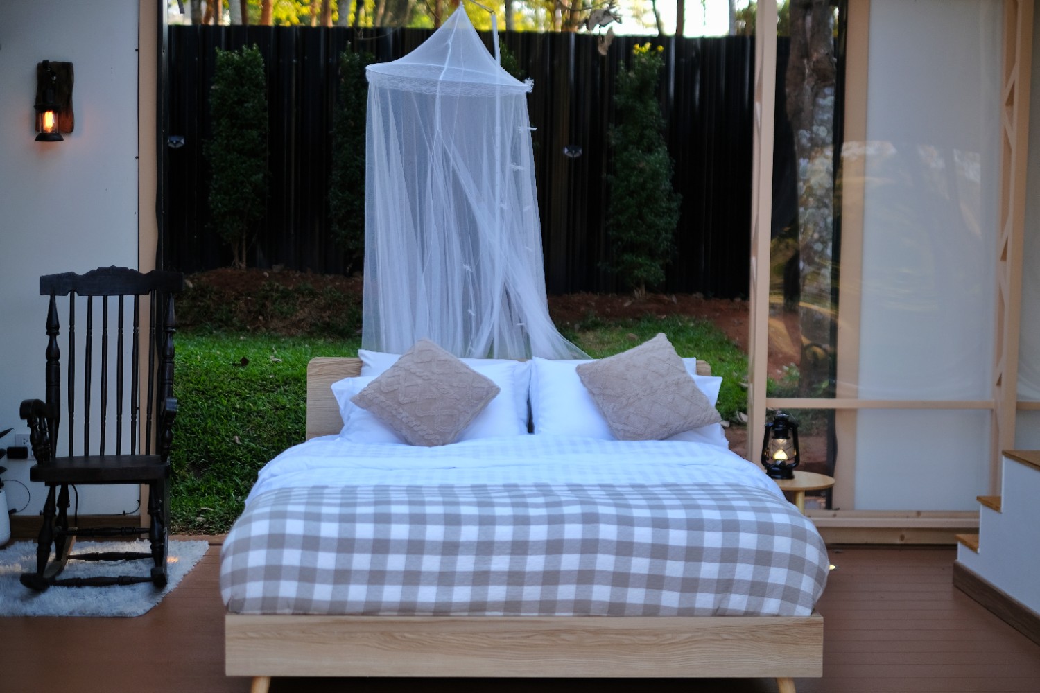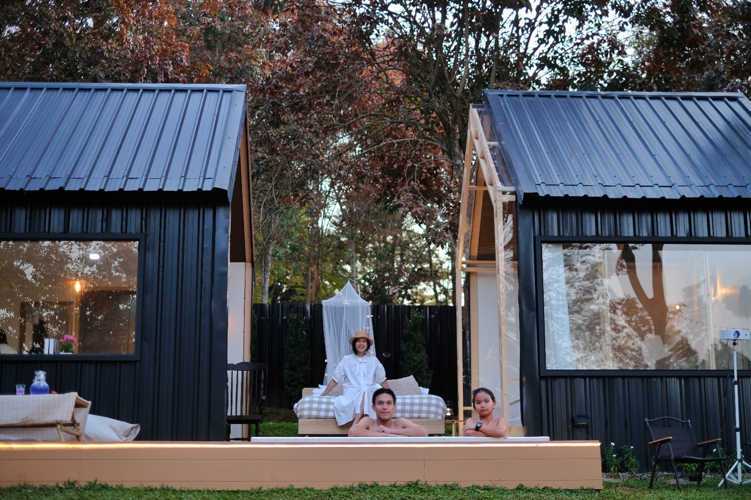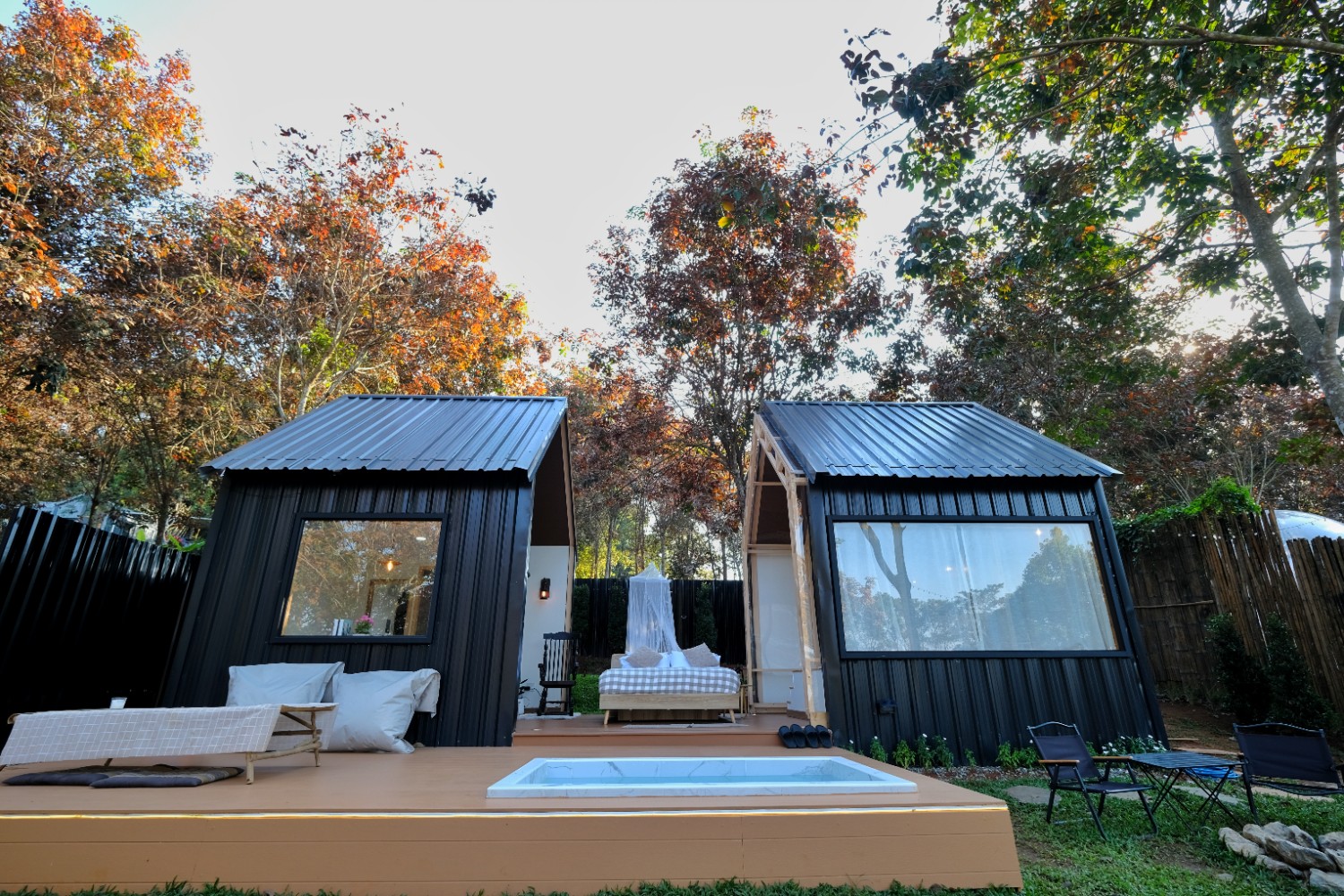 ที่พักมีเพียง 3 หลัง แบ่งเป็น ที่พักแบบโดมใส 2 หลัง และ Glass Cabin คาบิ้นกระจกใสเลื่อนได้ 1 หลัง มีธรรมชาติล้อมรอบ แบบไม่ต้องเดินทางขึ้นดอยเลย