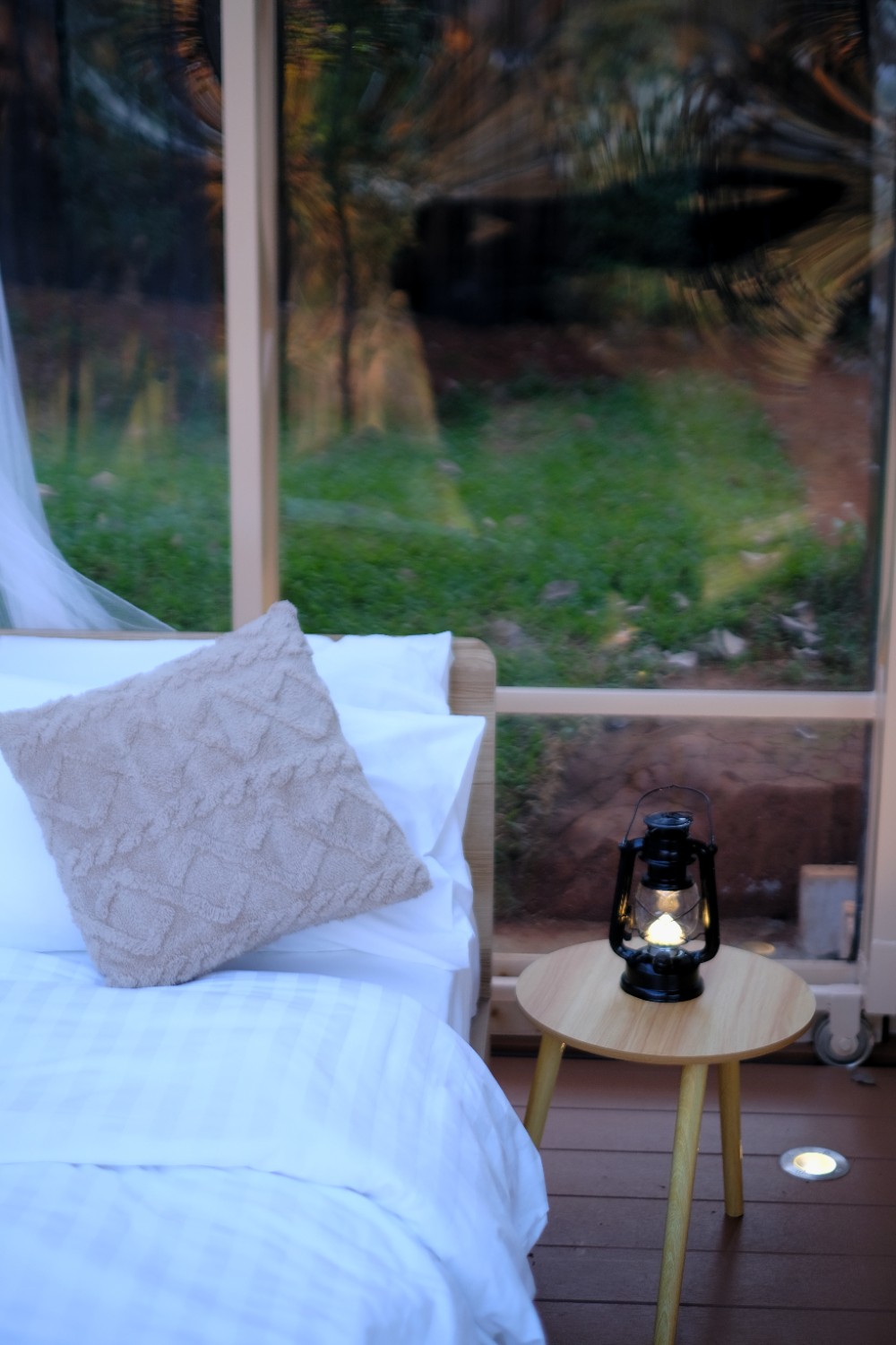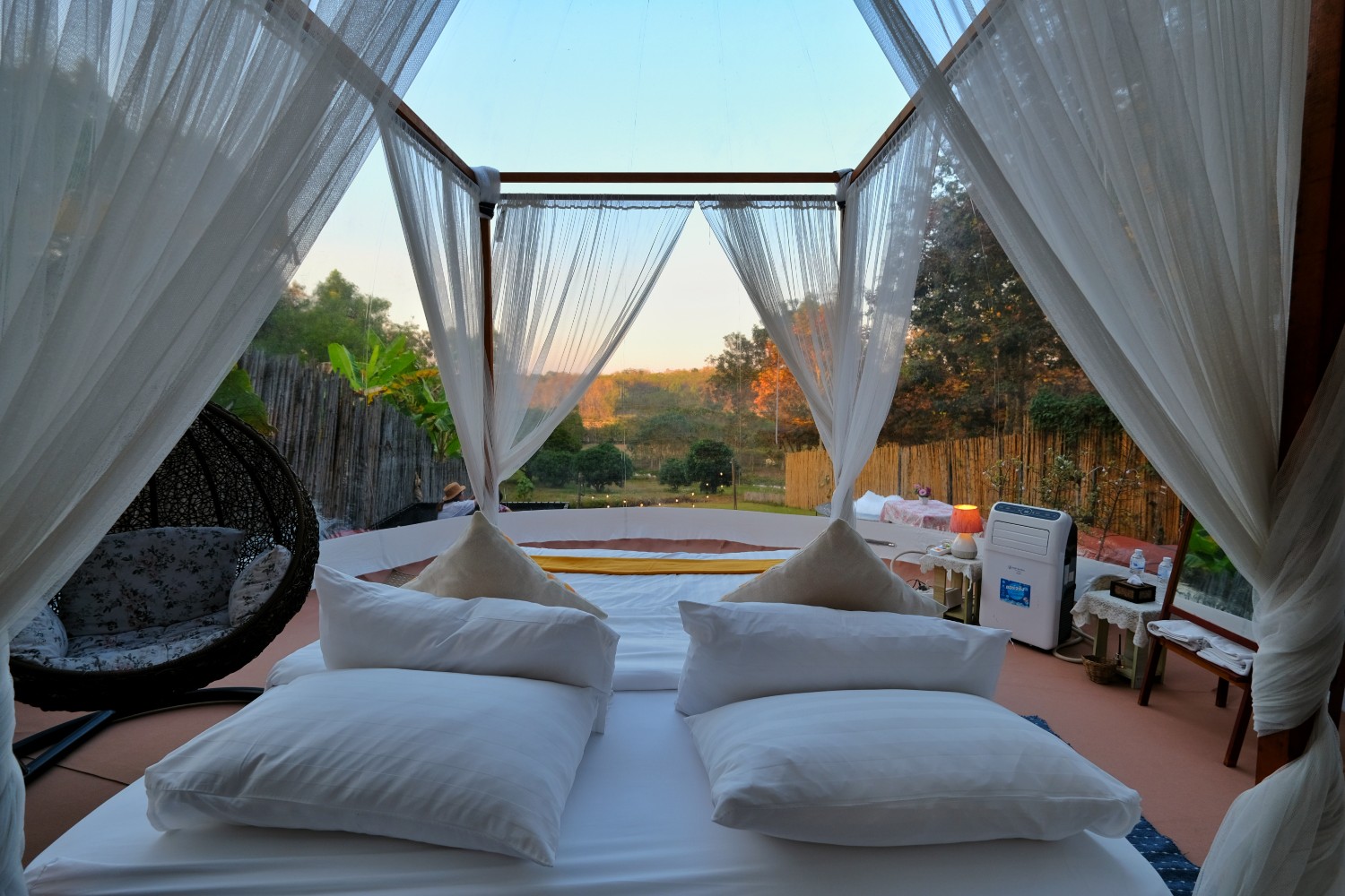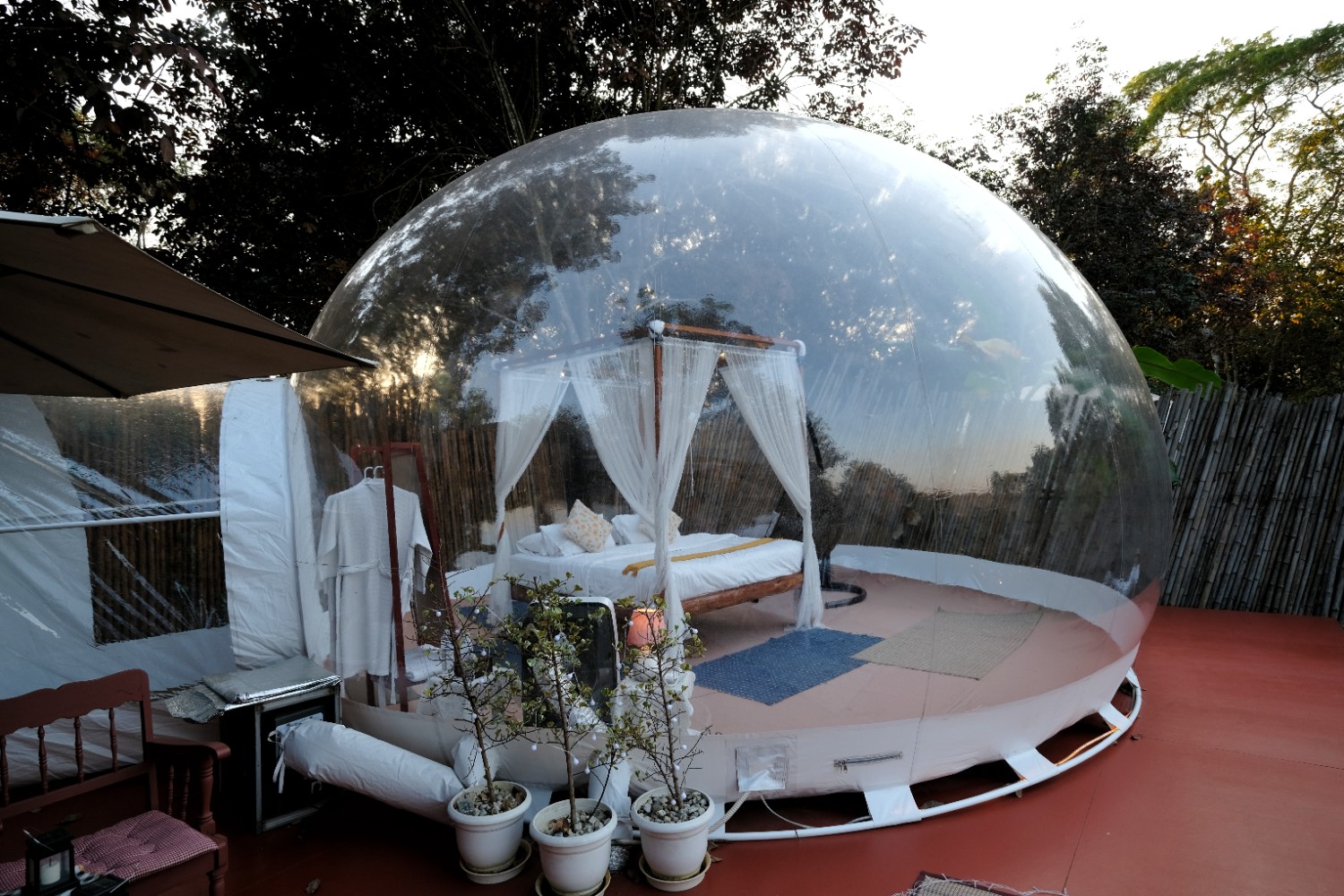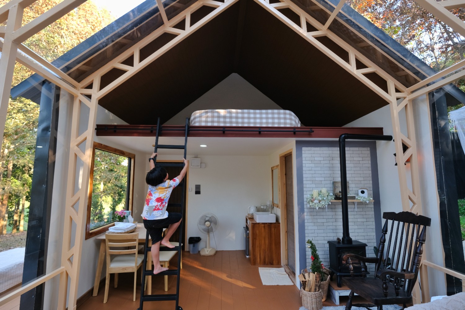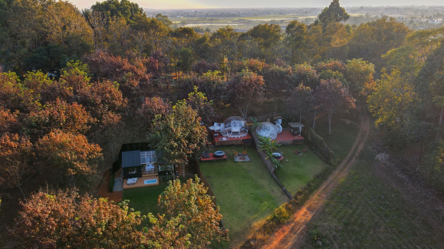 ที่พักมีเพียง 3 หลัง แบ่งเป็น ที่พักแบบโดมใส 2 หลัง และ Glass Cabin คาบิ้นกระจกใสเลื่อนได้ 1 หลัง มีธรรมชาติล้อมรอบ แบบไม่ต้องเดินทางขึ้นดอยเลย